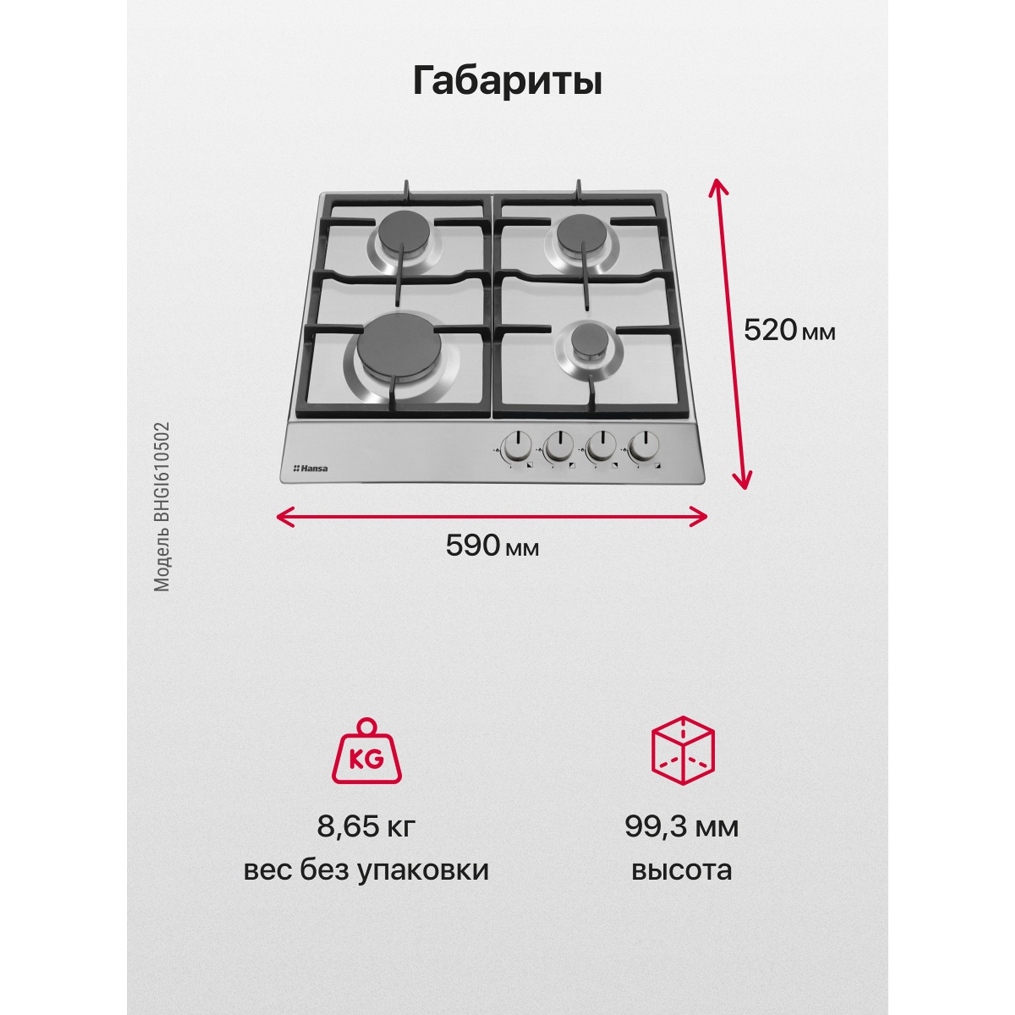 Высота варочной поверхности, мм