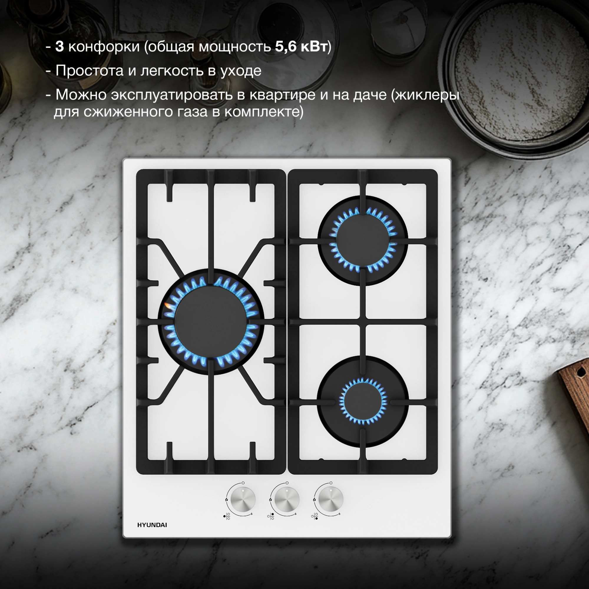 Суммарная мощность газовых конфорок 5600 Вт