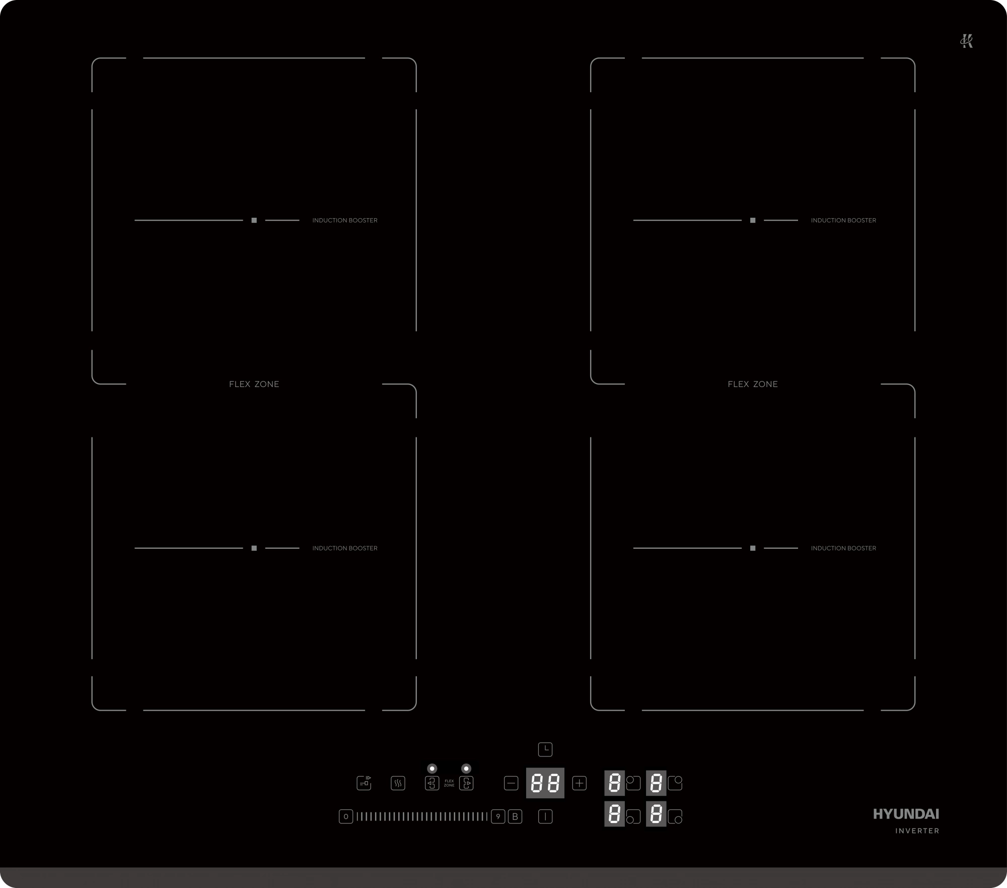 функция INDUCTION BOOSTER (автозакипание), INVERTER , функция FLEX ZONE (объединение зон нагрева), функция STOP&GO, функция KEEP WARM