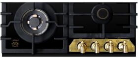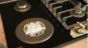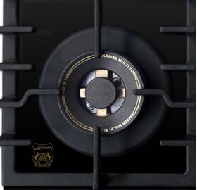 Описание конфорок 1 х Ø 4,0 см малая горелка (1,0 кВт) 2 х Ø 6,5 см нормальная горелка (1,75 кВт) 1 х Ø 13,0 см тройная турбо горелка (3,8 кВт)