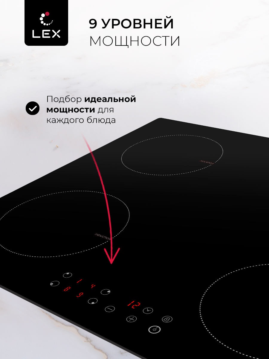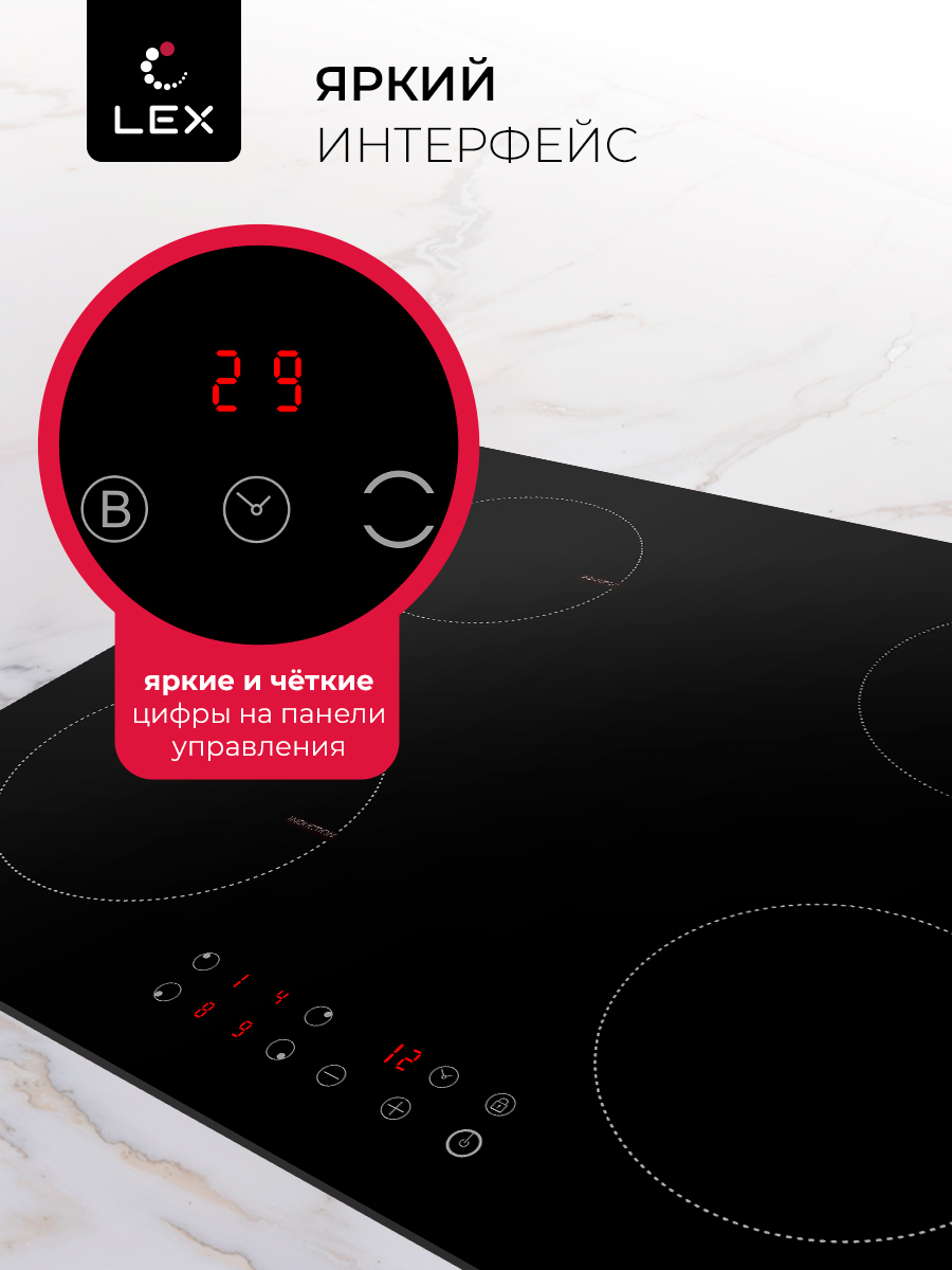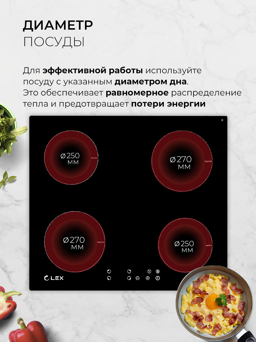 Датчик распознавания наличия посуды, Защита от перегрева, Индикатор остаточного тепла, Кнопка блокировки панели, Отключение при выкипании