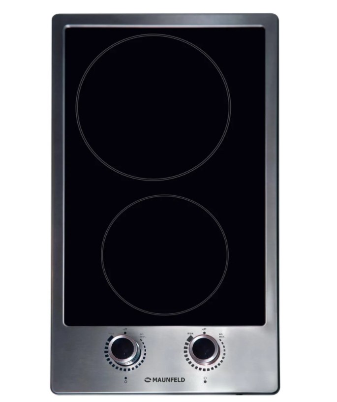 Hi-Light конфорки, установленные в этой модели, очень быстро нагреваются (за 3-7 секунд). Одна конфорка (d=165 мм) мощностью 1200 Вт, вторая конфорка (d=200 мм) - 2000 Вт.Механическое управление, расположенное на фронтальной поверхности, дает возможность выбрать уровень мощности для каждой конфорки (от 0 до 9).
