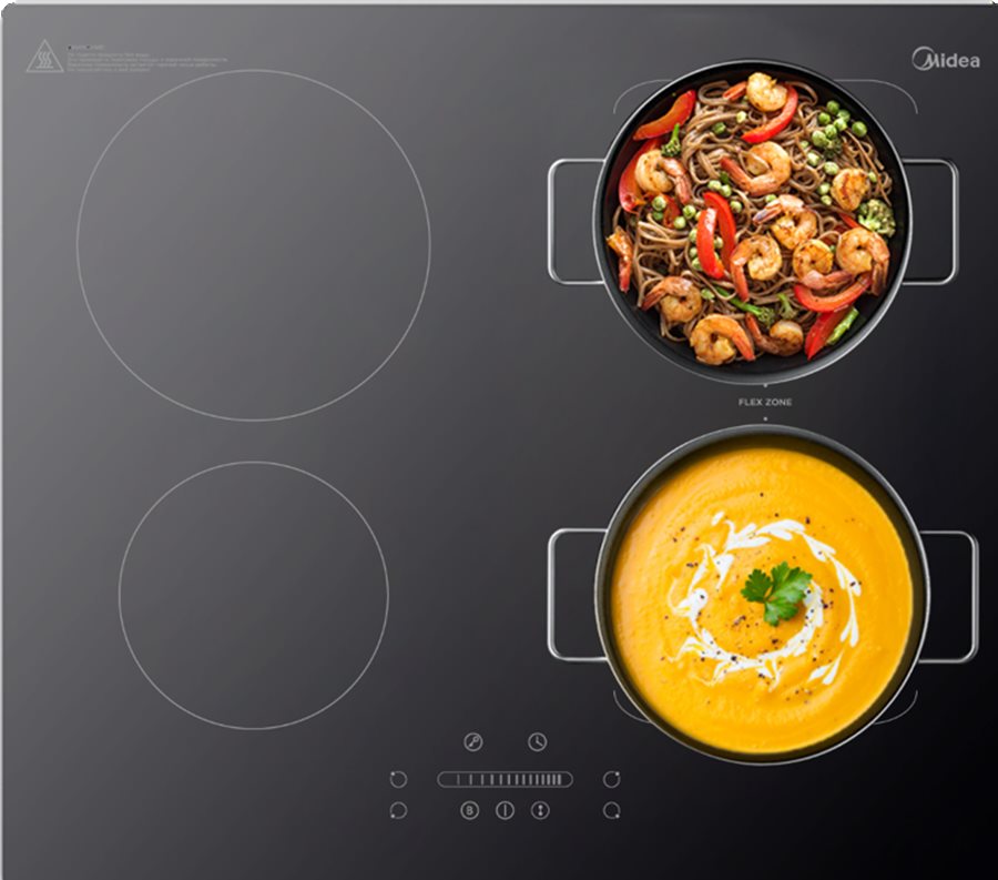 Дополнительно расширенная зона конфорок FlexiZone, повышение мощности Power Boost, керамическое стекло EasyClean