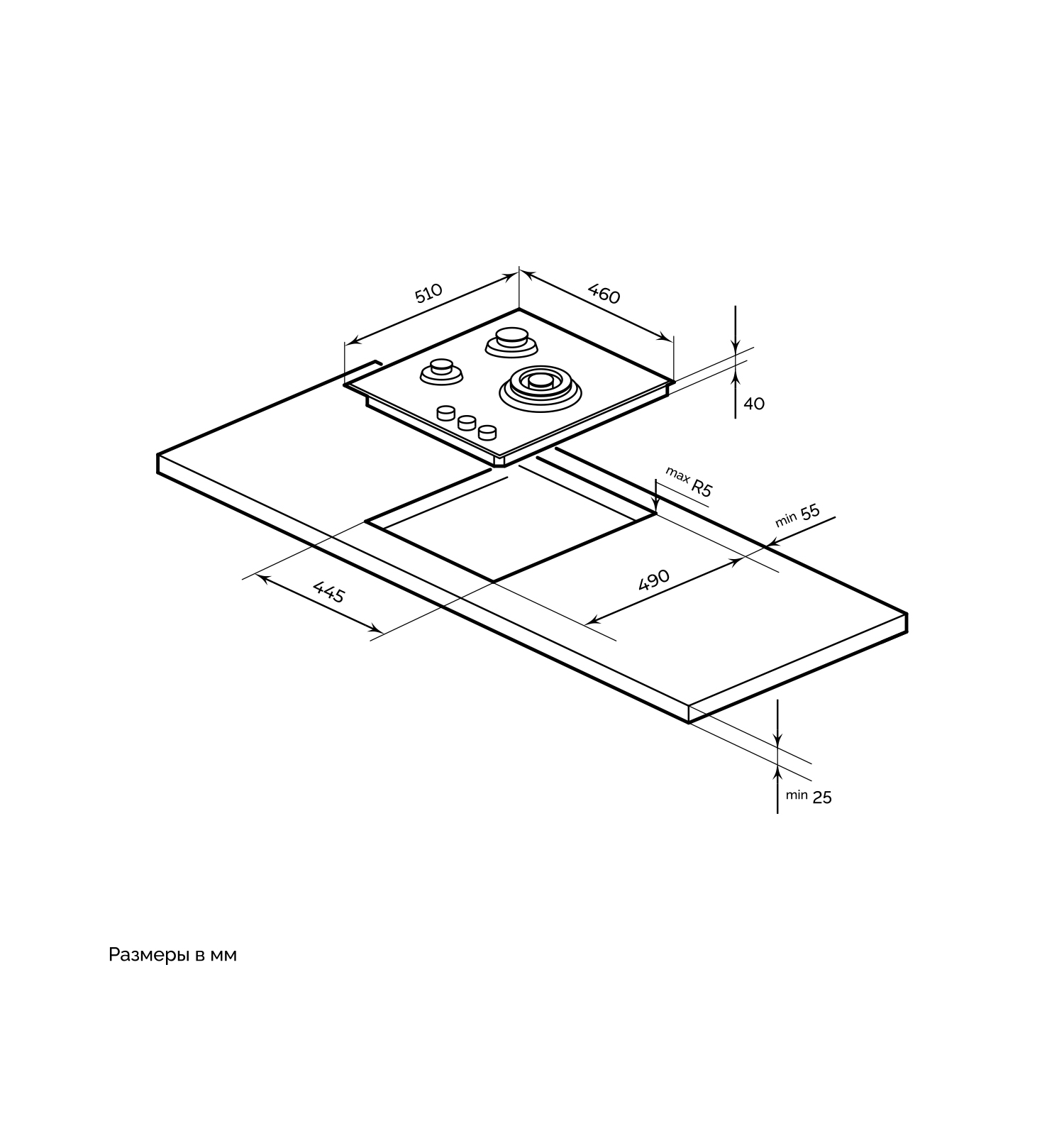 Размер для встраивания (ВхШхГ) 445х490 мм