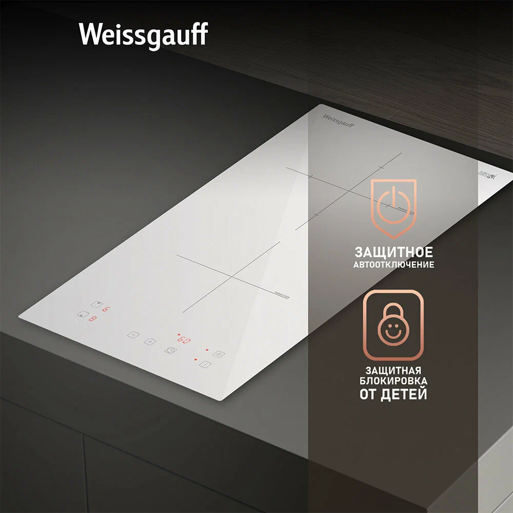 защитное отключение конфорок, индикатор остаточного тепла, кнопка блокировки панели