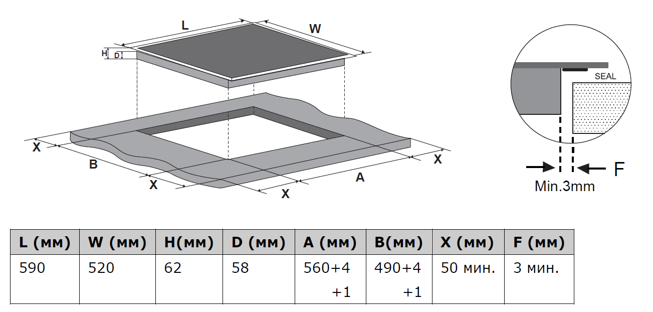 распознавание наличия посуды, таймер, функция Booster, функция Flex Zone