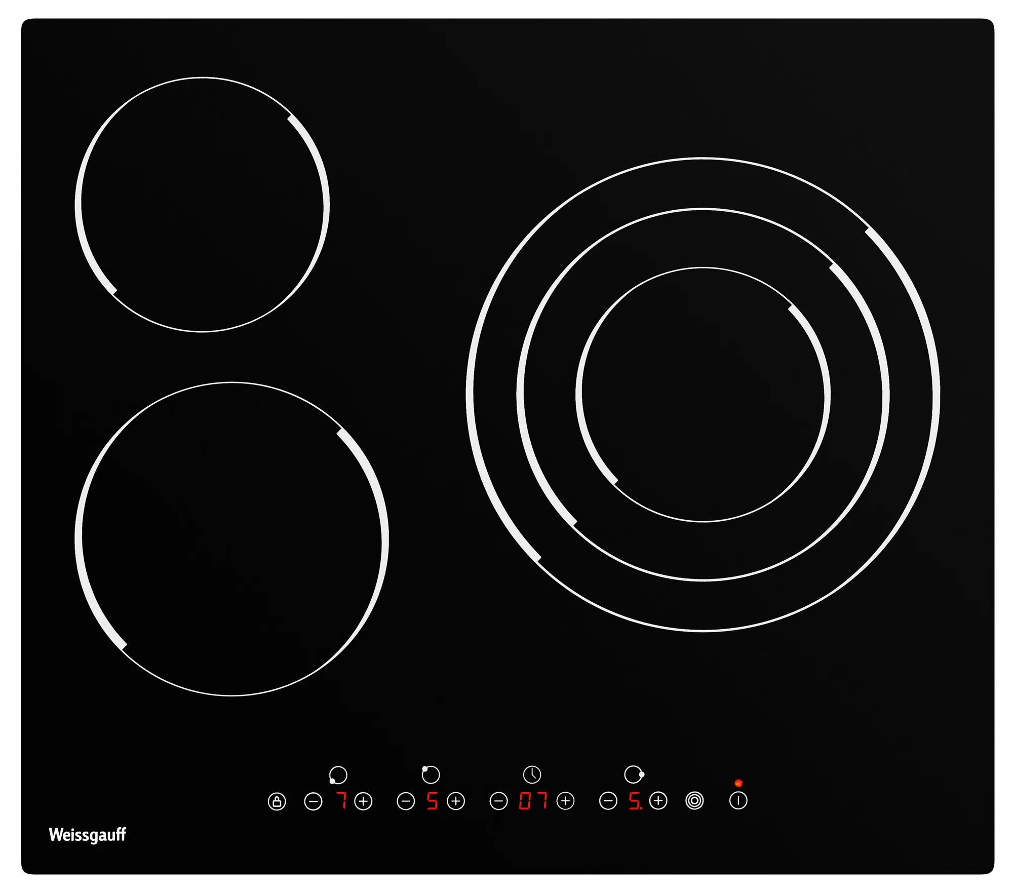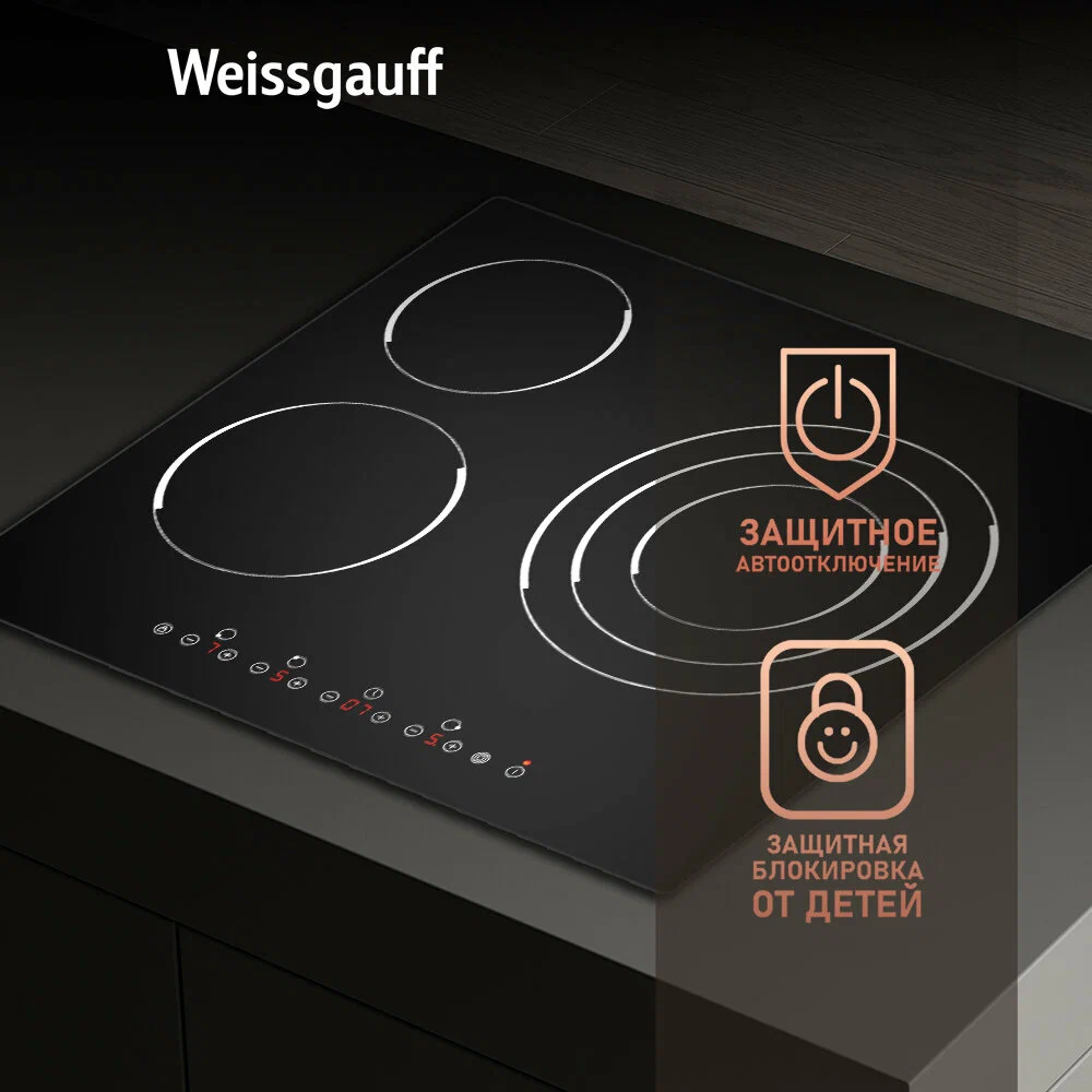 защитное отключение конфорок, индикатор остаточного тепла, кнопка блокировки панели, защитное отключение конфорок, индикатор остаточного тепла, защитное отключение конфорок, кнопка блокировки панели