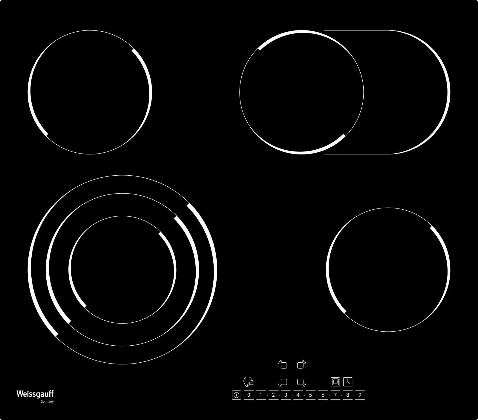 Мощность (левой ближней конфорки): 850/1700/2400 Вт