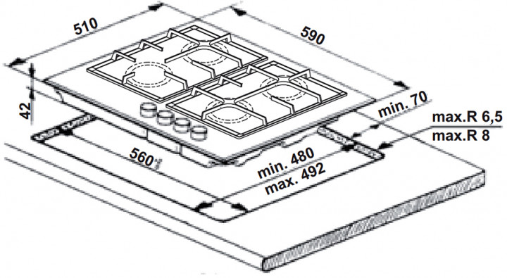 Размеры ниши для встраивания (ШхГ) 560 х 490 мм