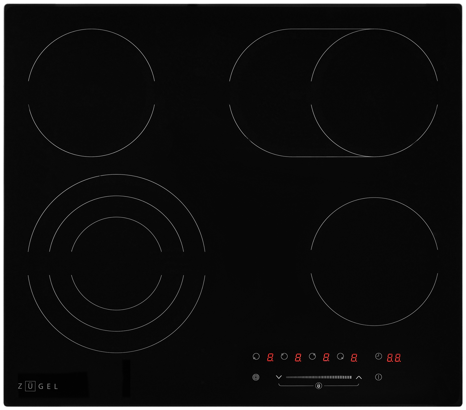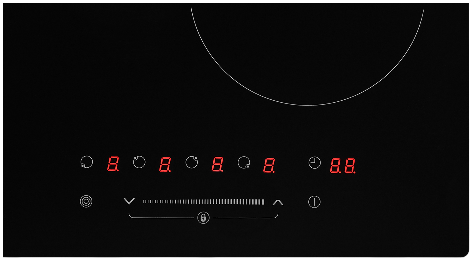 защитное отключение конфорок, индикатор остаточного тепла, кнопка блокировки панели