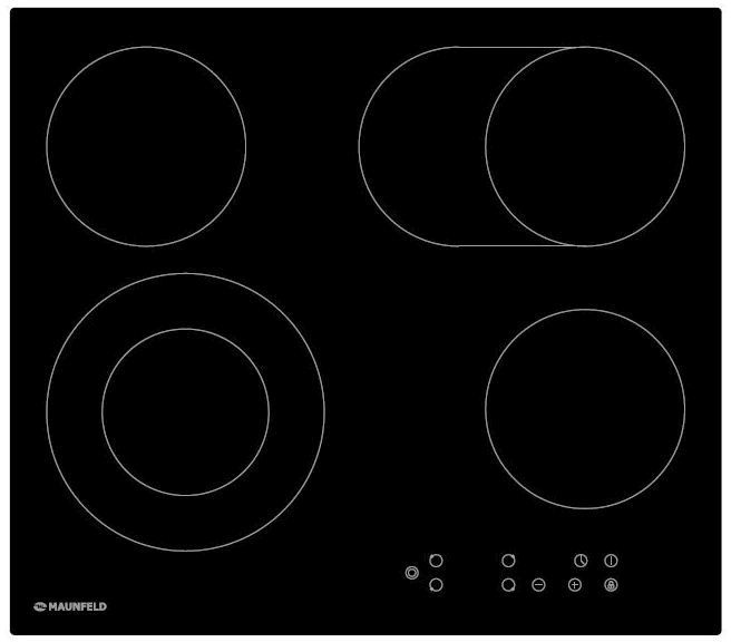 Правая дальняя конфорка мощность 1000/2200 Вт