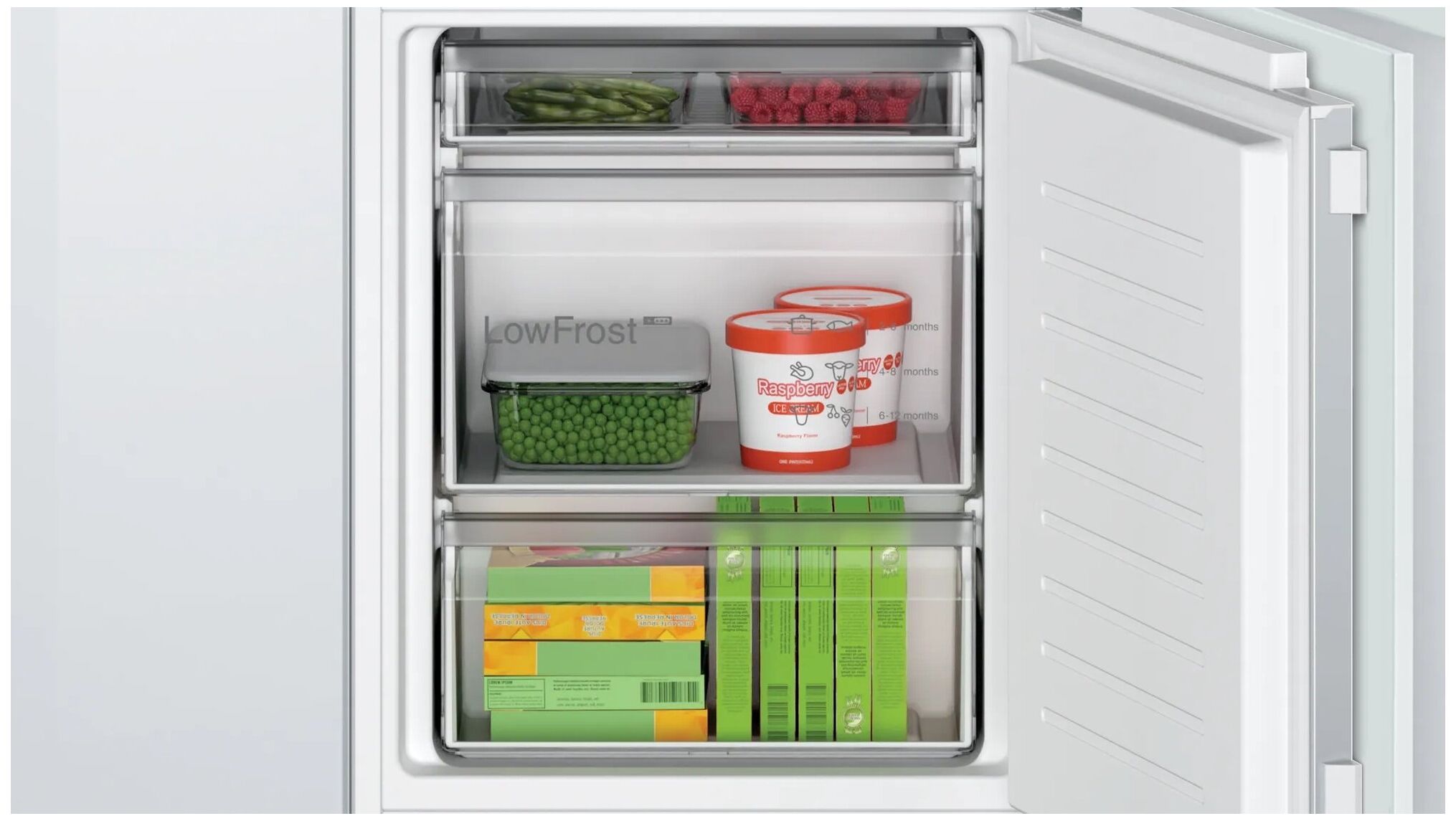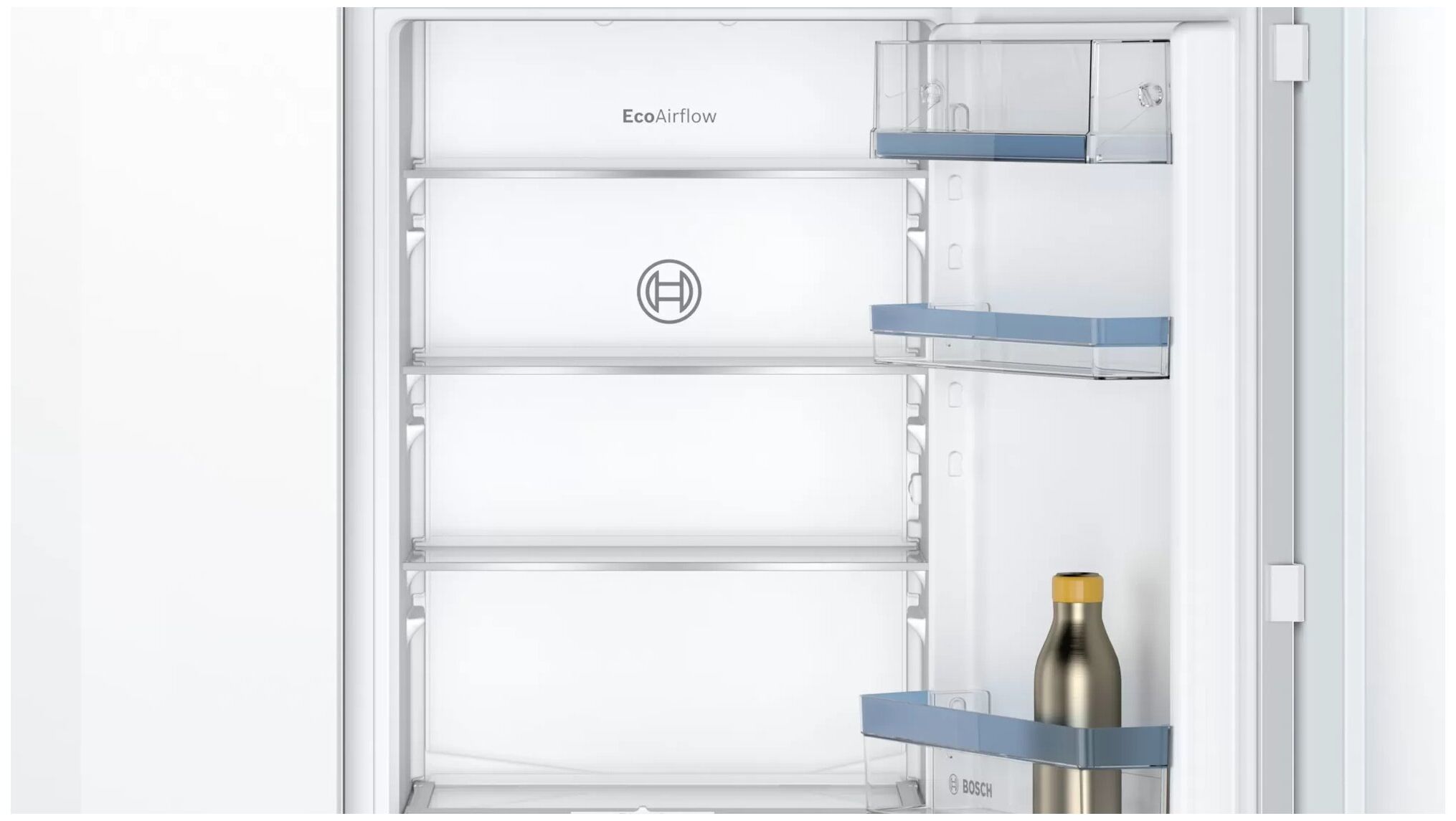 Выдвижная полка из ударопрочного стекла обеспечивает отличный обзор содержимого холодильника как вблизи, так и в глубине.