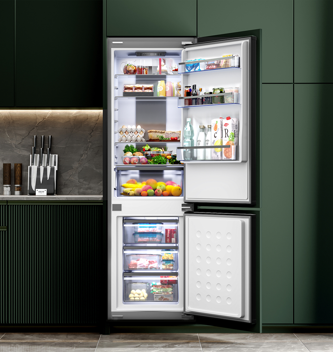 В холодильной камере – 3+3 / В морозильной камере – 3
