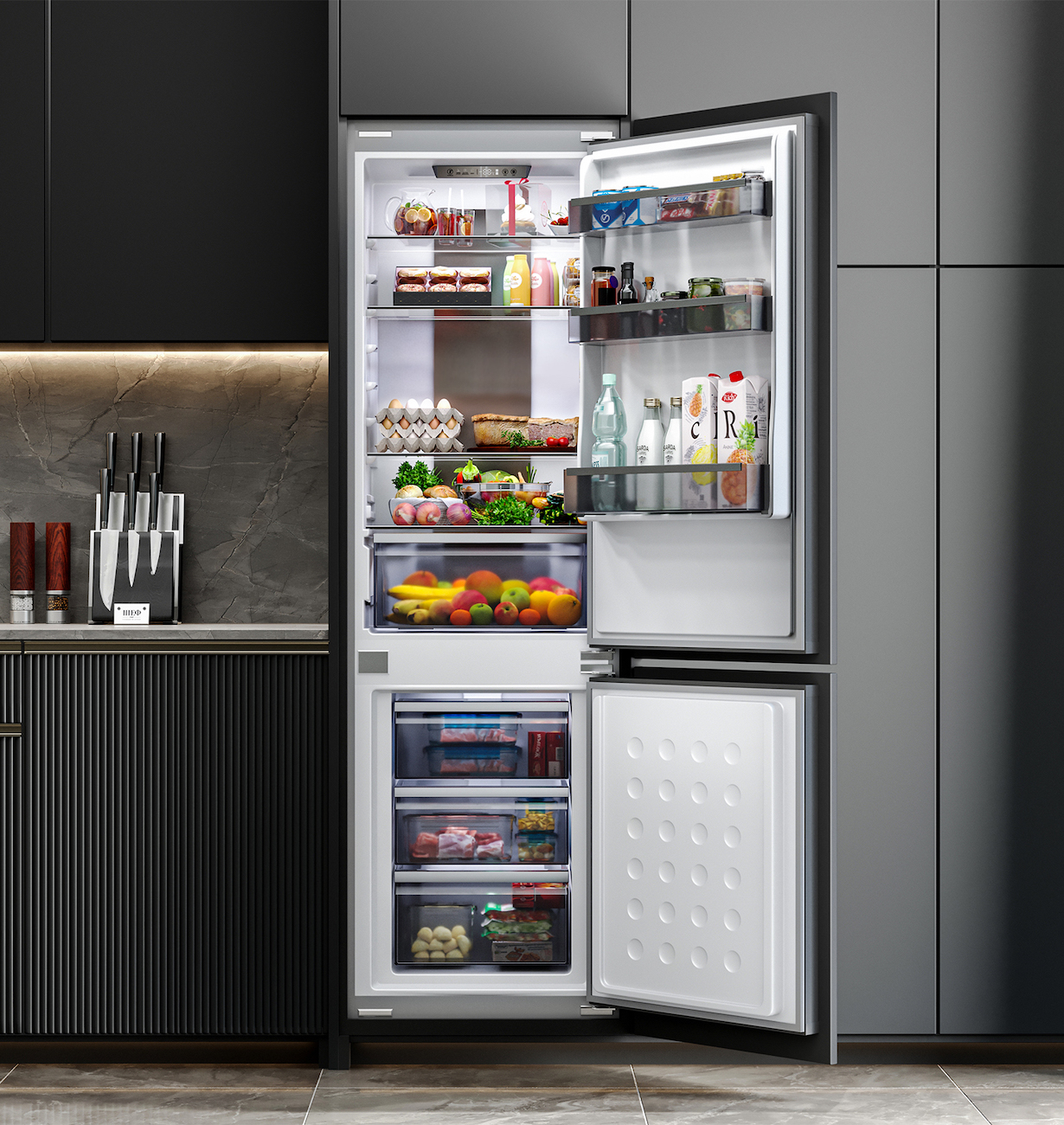 В холодильной камере – 3+3 / В морозильной камере – 3