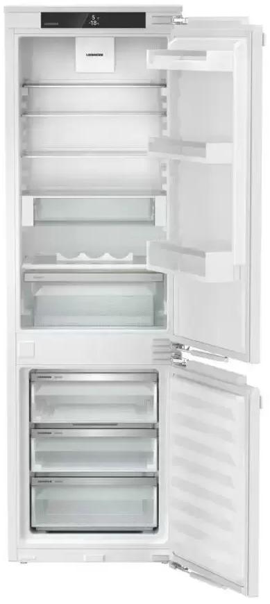 Встраиваемый холодильник Liebherr ICNd 5123 Plus высотой 177 см и полезным объемом 251 л. Внутри камера оснащена шестью полками, пять из которых регулируются по высоте, а одна разделяется. Контейнер EasyFresh обеспечивает более длительное хранение неупакованных овощей, фруктов и плодов, за счет плотно закрытой крышки и повышенной влажности. Сенсорное управление очень удобно и понятно, выбрать нужный режим можно в одно касание. Вы можете настроить ваше устройство и через приложение, после монтажа SmartDeviceBox, стандартные опции расширятся еще более удобными. IceCubeTimer во время вечеринки станет превращать воду в кубики льда с повышенной скоростью. HolidayMode сэкономит электроэнергию, но и не даст распространиться неприятным запахам. Режим BottleTimer активирует функцию SuperFrost и при достижении продуктом нужной температуры на приложение приходит уведомление.