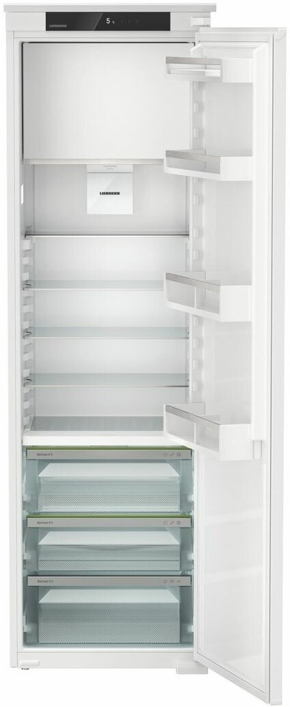 Либхер IRBSe 5121 оснащен морозильной камерой ****, зоной свежести BioFresh из трех контейнеров с разным уровнем влажности. В ящике DrySafe хранят охлажденные мясо и рыбу, в HydroSafe — овощи и фрукты, травы и ягоды. Благодаря частично выдвигаемым телескопическим направляющим лотки легко вынимать, даже если они полностью загружены.