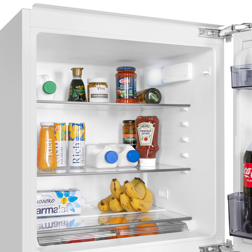 Компактный встраиваемый холодильник высотой 88 см. Общий объем холодильной камеры, имеющей динамическое охлаждение – 137 л.