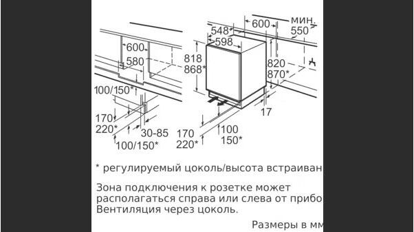 Ширина тумбы для встраивания (см) 60