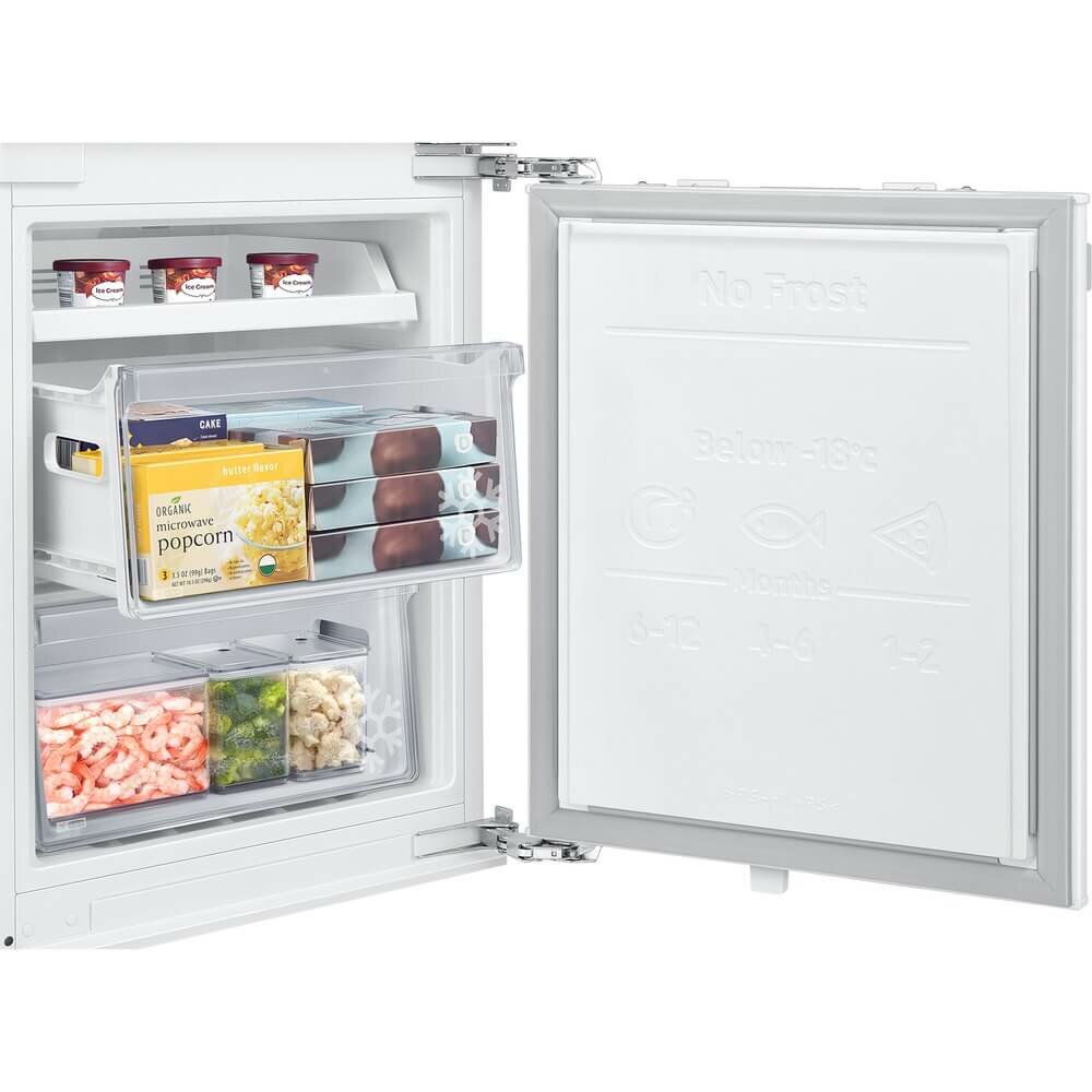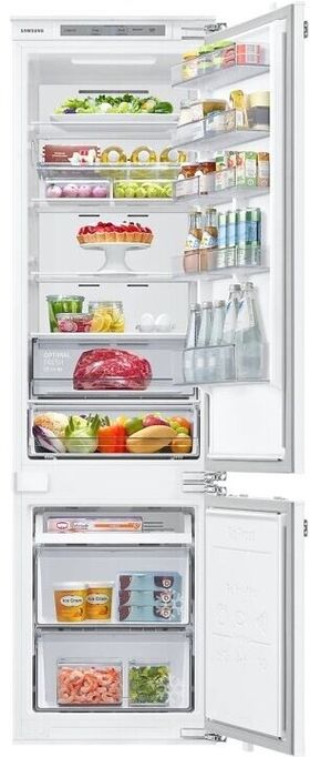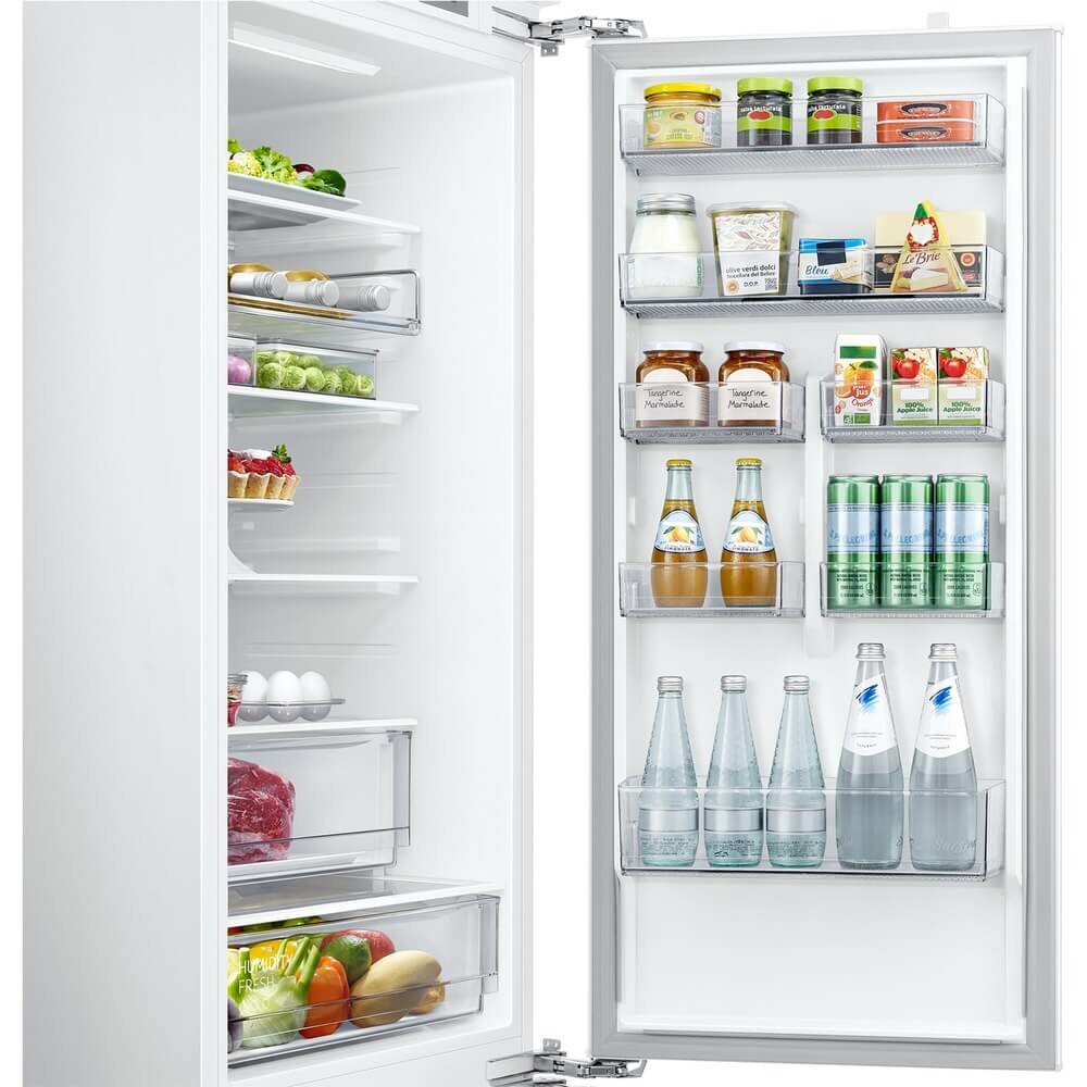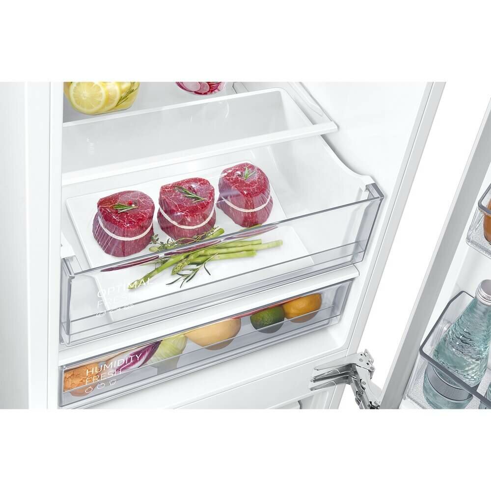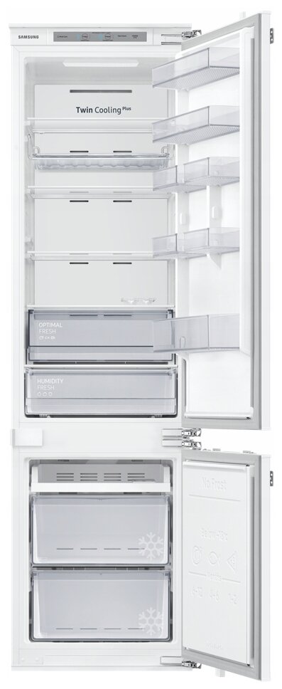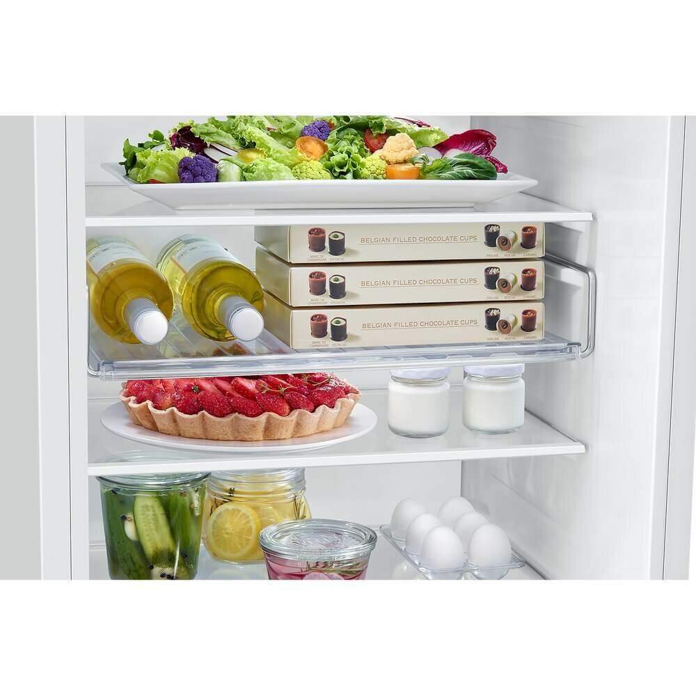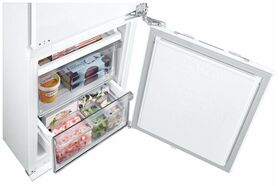 Внутреннее LED-освещение в х/о 3 стеклянные полки, переставляемые по высоте 7 дверных балконов 2 выдвижных ящика в морозильном отделении + Полка Easy Slide Контейнер для овощей и фруктов 1 емкость для льда Контейнер для яиц Уровень шума: 35 дБ (А) Габаритные размеры (шхвхг): 54 × 193.5 × 55 см Монтажные размеры (шхвхг): 55,5 х 193.8 x 56 см