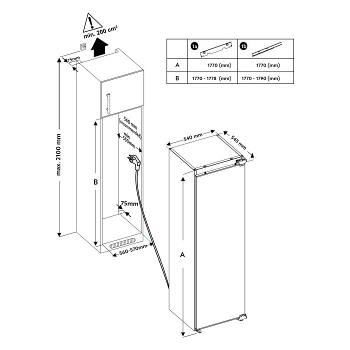 Размер ниши для встраивания (ВхШхГ) 177-179x56-57x55-56 см