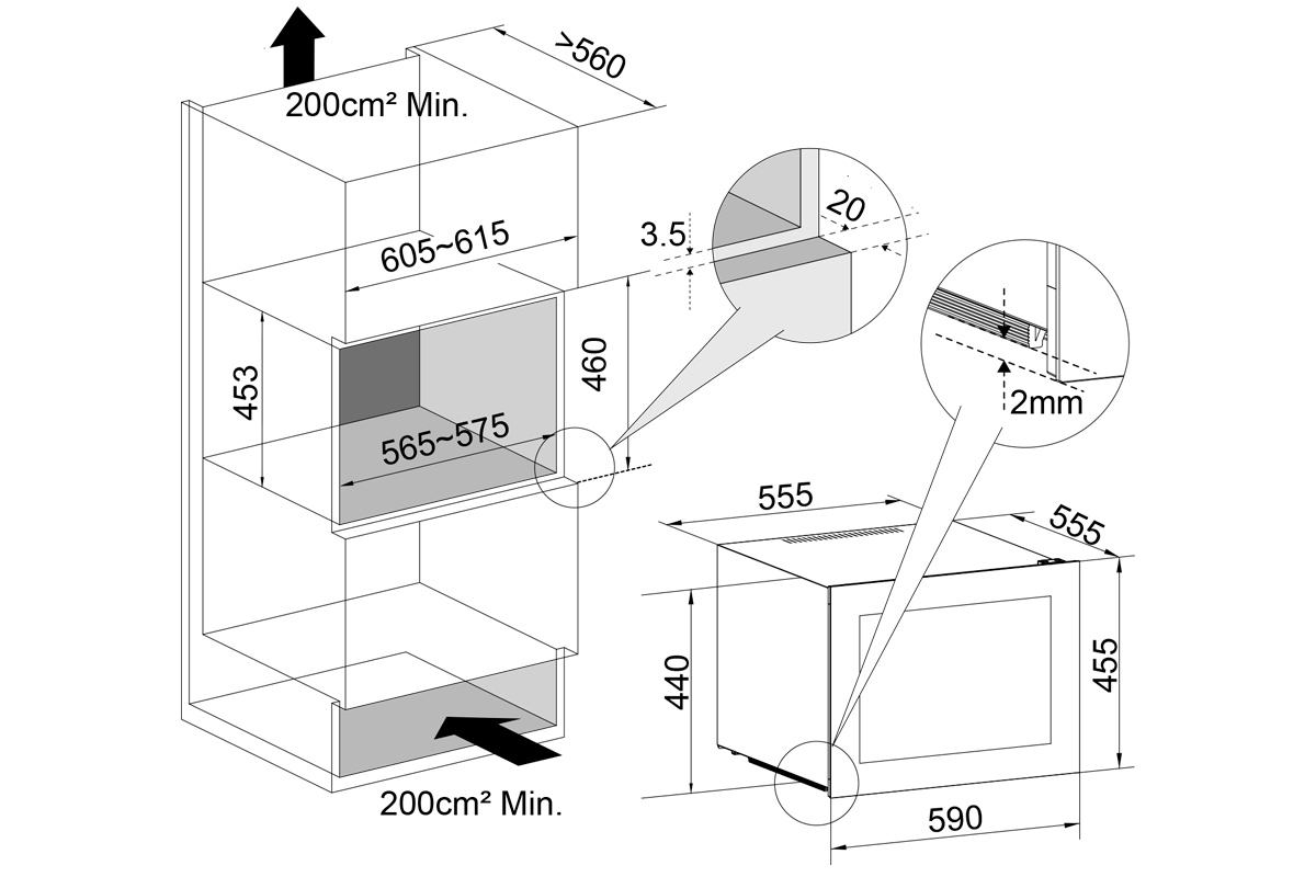 Габариты прибора (ШхВхГ) 595x455x555