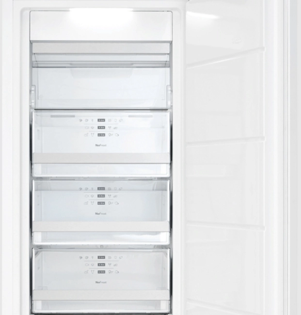 Система No Frost исключает необходимость ручного размораживания, препятствует образованию наледи на стенках рабочей камеры. Это также предотвращает возникновение инея на оболочке продуктов, что защищает их от высыхания и увеличивает срок хранения.