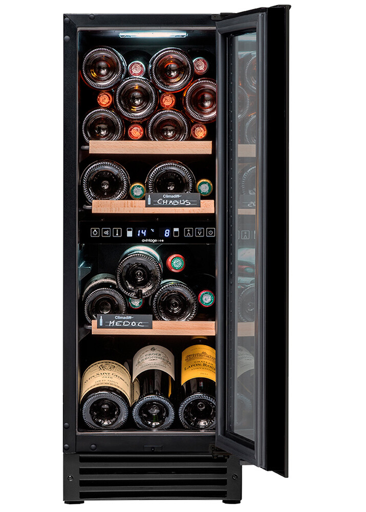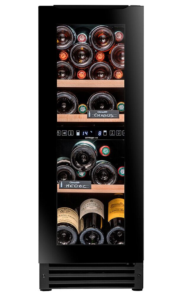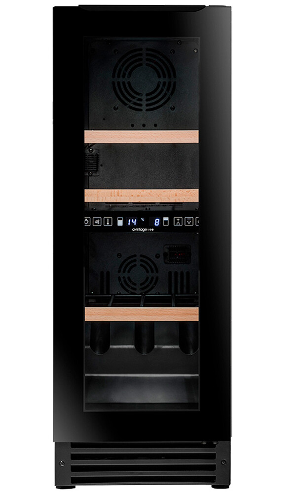 Двухзонный винный шкаф Avintage AVU53TDZB1 для подготовки вина вмещает 53 бутылки (типа Бордо.