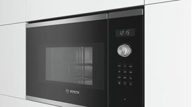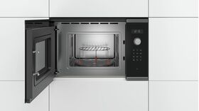 Встраиваемая микроволновая печь Bosch BEL524MS0 отличается высоким качеством функционирования, многофункциональностью, приятным оформлением, позволяющим вписать ее в любой кухонный интерьер. Имеет объем камеры 20 литров. Микроволны и гриль могут использоваться индивидуально и в комбинации. Модель имеет 8 автопрограмм: 4 – для разморозки и 3 — для приготовления в микроволновом режиме, 1 программа для комбинированной работы. В приборе предусмотрено внутреннее светодиодное освещение. Устройство поможет получить максимум пользы от замороженных блюд при помощи функции бережного и эффективного размораживания. Она поможет сохранить все ароматы и текстуру продуктов.