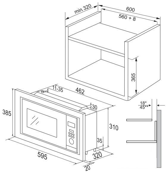 Размеры ниши (ШхВхГ): 60 х 36.5 х 32 см