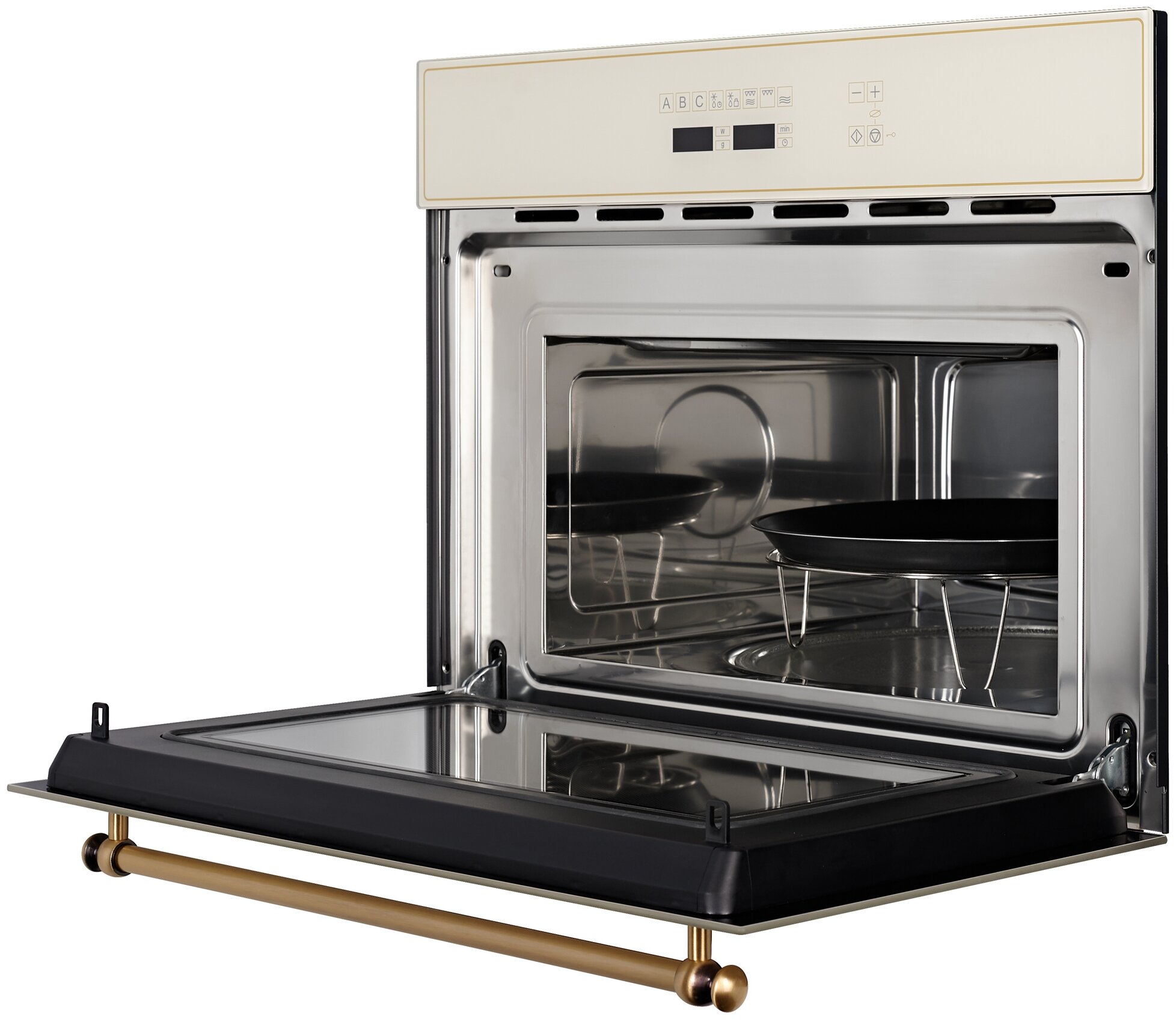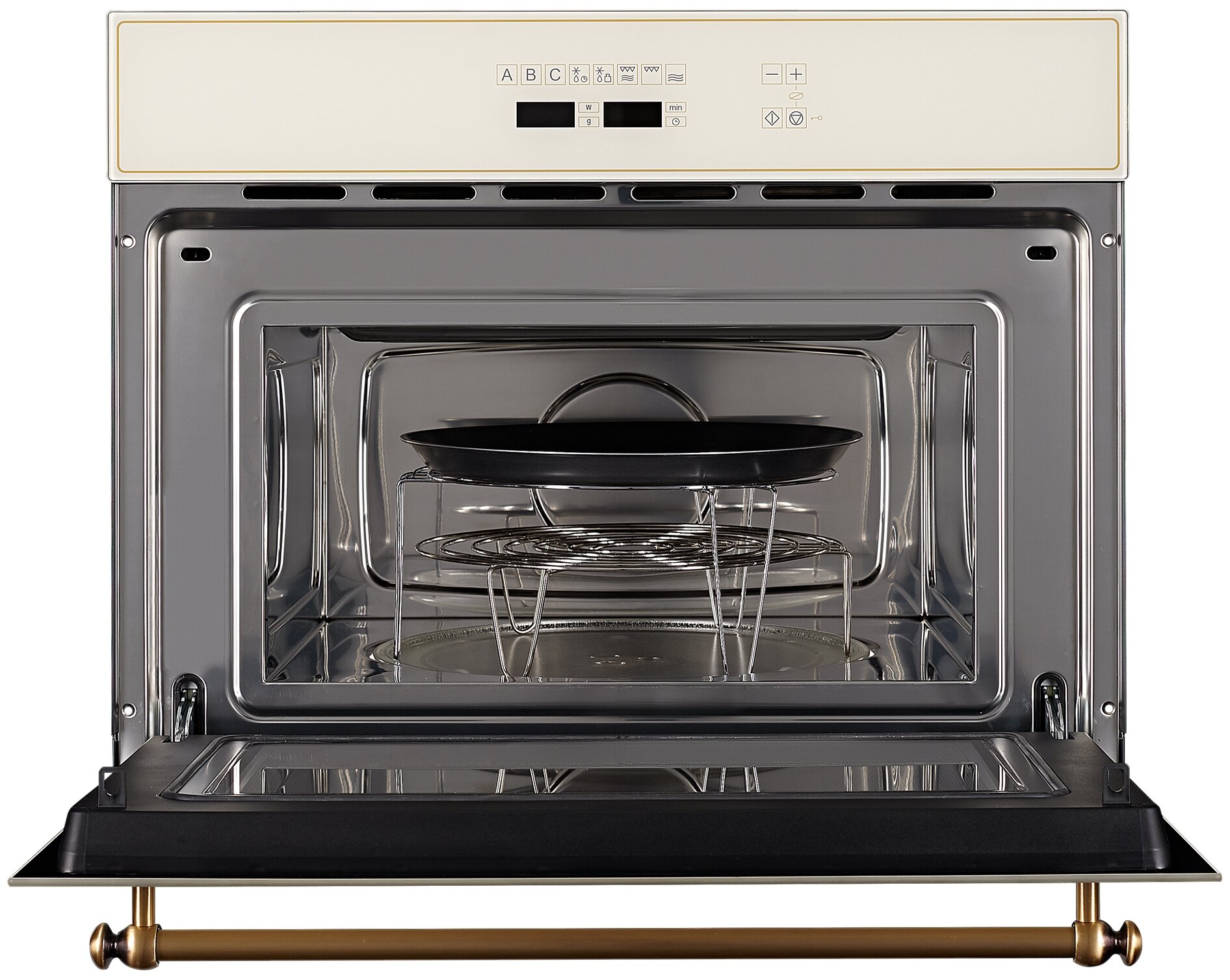 решеток для гриля в комплекте: 2; количество рецептов автоподогрева: 11; количество режимов авторазморозки: 2; часы: есть; таймер: есть, многофункциональный; размер рабочей камеры (ВхШхГ), мм: 210×420×390; принадлежности: поворотный стол 320 мм, высокая и низкая решетка для гриля; коллекция: Classic; цвет фурнитуры: бронзовый