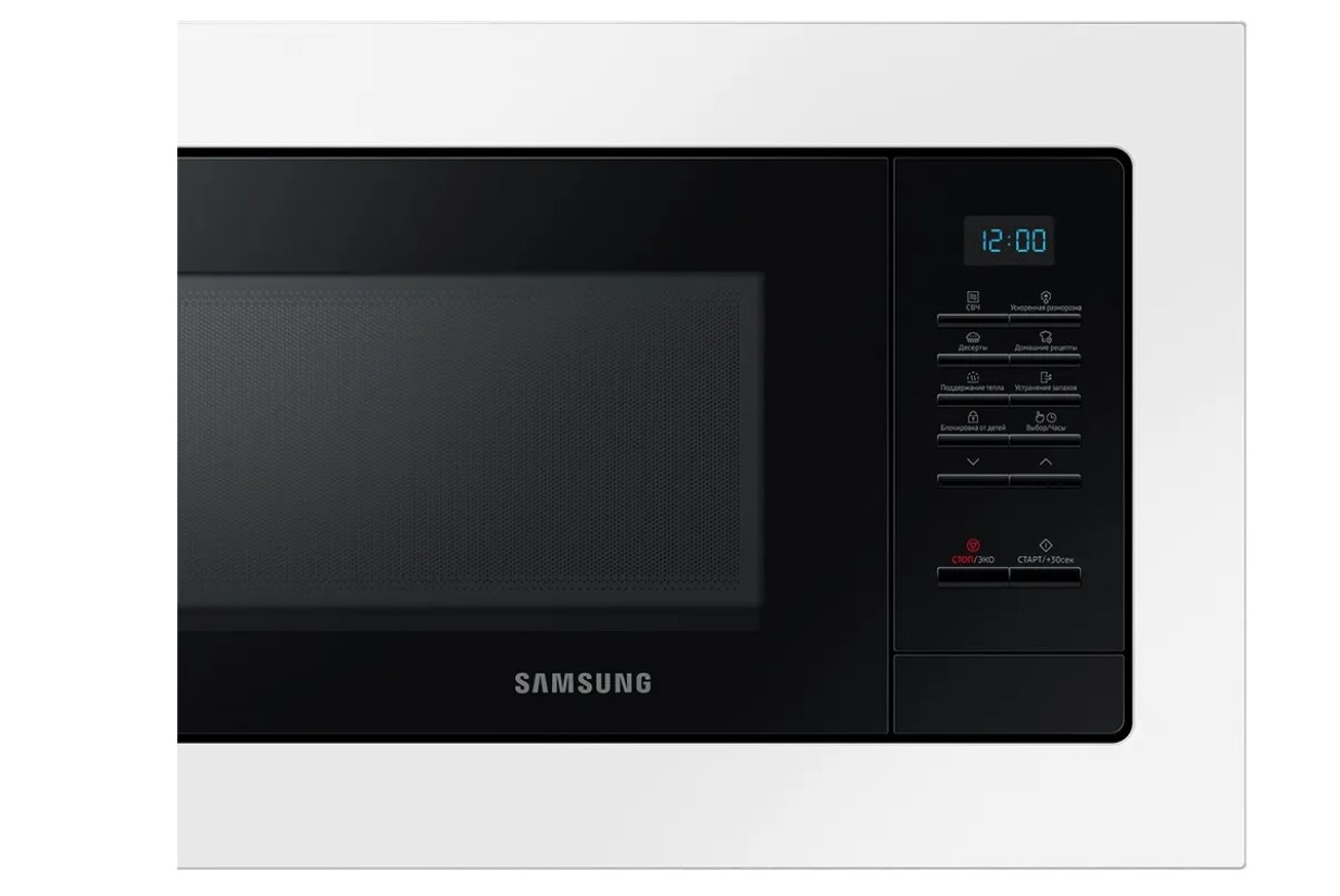 Встраиваемая микроволновая печь MS23A7013AL с электронным типом управления и автоматическими рецептами порадует многих пользователей. За счет скромных габаритов (27,5х48,9х34,6 см) она будет органично смотреться даже в малогабаритных помещениях. Стильный дизайн в черном и белом тонах подойдет для многих решений интерьеров.Камера объемом 23 л изготовлена из биокерамики, а материалами фронтальной панели стали нержавеющая сталь и стекло. Есть 48 автоматических программ, гриль и функция поддержания температуры. Семьи, где подрастает молодое поколение, оценят наличие опции «защита от детей». К преимуществам этой модели относят поддержание тепла уже приготовленной еды и очистка от запахов.