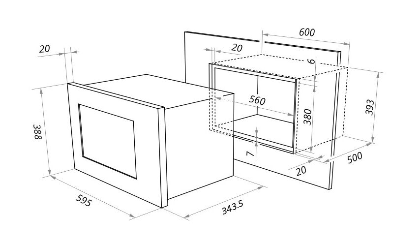 Размер для встраивания (В*Ш*Г) (мм) 380x560x500