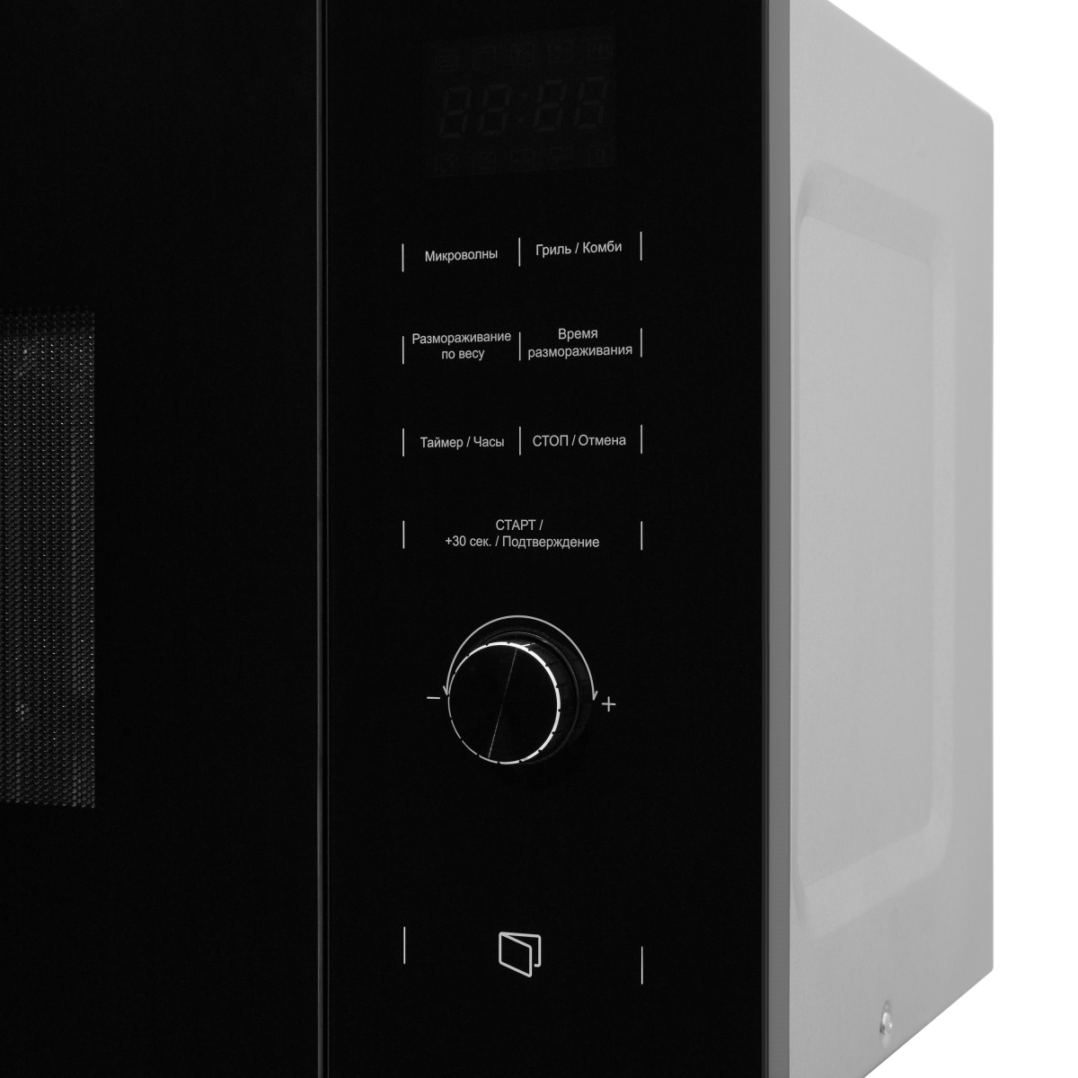 Особенности Автооткрывание дверцы / Безрамочный дизайн / Большой LED дисплей белый / Подсветка / Покрытие камеры из нержавеющей стали / Мощность гриля 1000 Вт / Диаметр тарелки 315 мм / Объём 25 л / Решетка для гриля / Размораживание по весу / Размораживание по времени / Быстрый старт / Таймер приготовления / Автоменю / Блокировка от детей