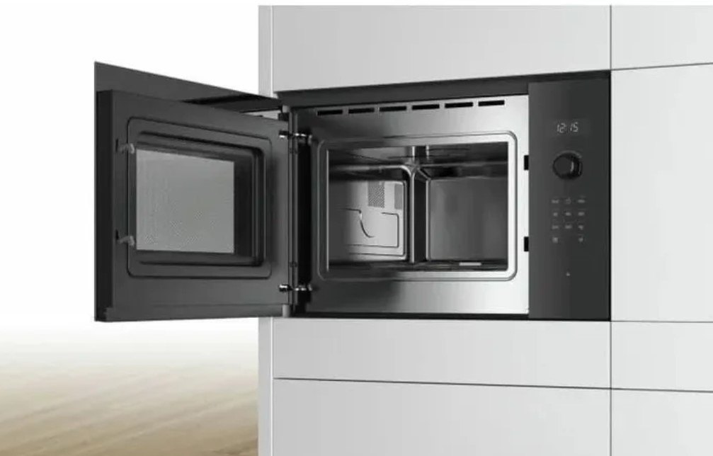 Встраиваемая микроволновая печь Bosch BFL550MB0 – прибор, который не займет много места на вашей кухне, зато стает вашим незаменимым бытовым помощником. Это устройство объемом 25 л эстетично выглядящая и легко поддающаяся очистке. В печи вы можете не только подогреть блюдо, но и разморозить продукты, а также выбрать программы готовки – внутреннее пространство прибора прогревается быстро и равномерно. Bosch BFL550MB0 снабжена дисплеем с простым и понятным сенсорным управлением, подсветка камеры дает возможность отслеживать процесс.