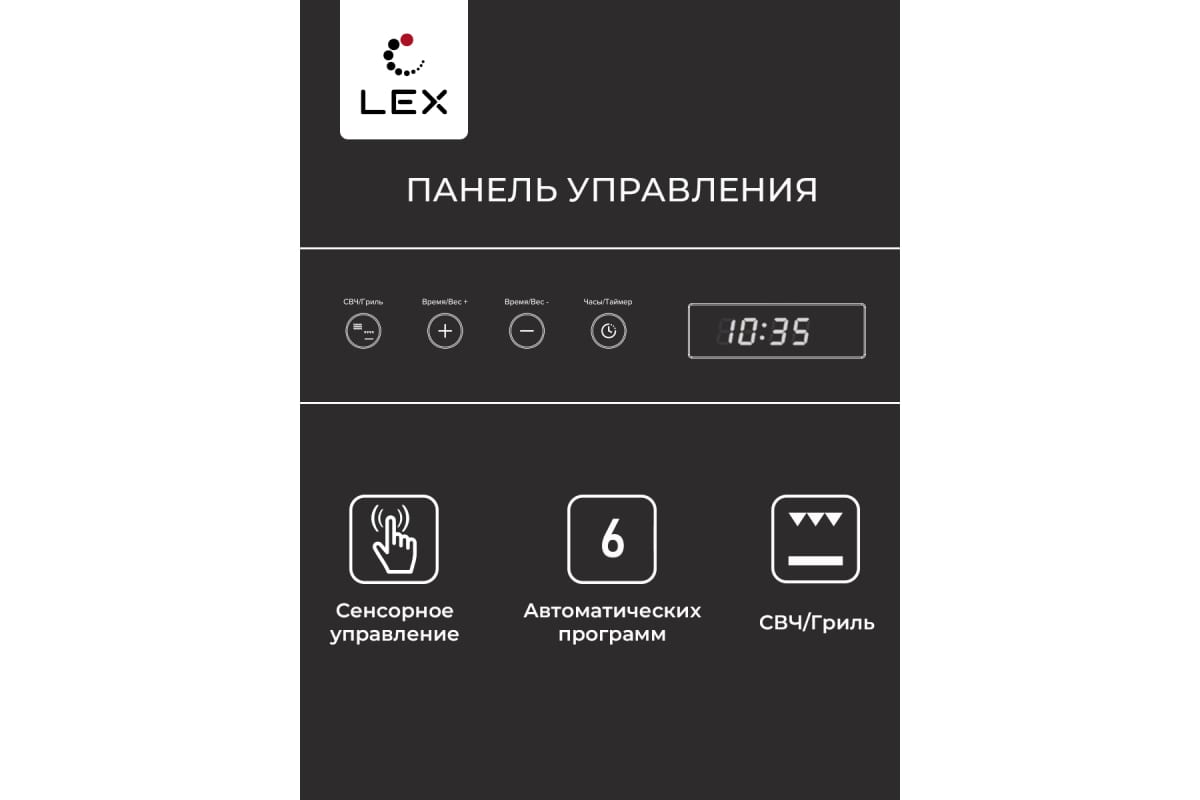 В распоряжении пользователя 6 автопрограмм, которые сделают приготовление разнообразных блюд простым и быстрым. Также вы можете готовить на гриле мощностью 800Вт, разогревать и размораживать продукты.