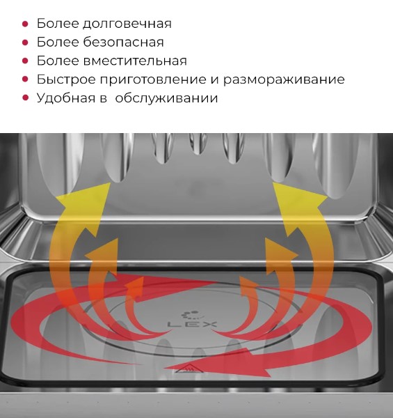 Кроме этого, данная особенность моделей этих серий обеспечивает более быстрое приготовление и размораживание и при этом гораздо более удобна и проста в обслуживании камеры для приготовления. А срок службы такой конструкции более долговечен.