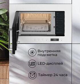 Встраиваемые микроволновые печи СВЧ серии BIMO 20.07 выгодно отличаются от большинства текущих моделей на рынке отсутствием поворотного стола, что в сочетании с сенсорной панелью управления TOUCH CONTROL, информативным LCD дисплеем, современным дизайном и максимальным набором функций, делает модели этих серий современным помощником при приготовлении и подчёркивает уникальный стиль Вашей кухни.