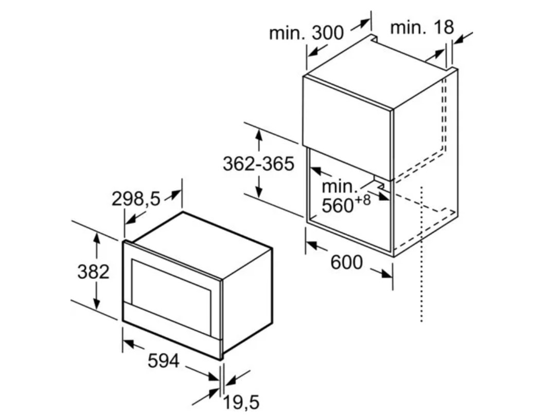 - Размеры монтажного пространства (ШхГхВ): 560 х 300 х 362 мм