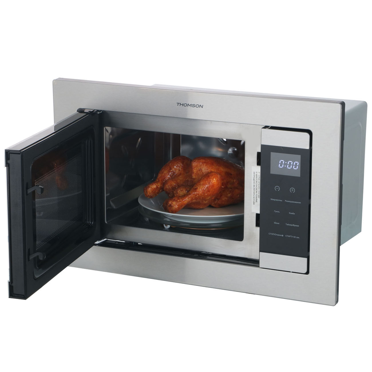 Встраиваемая микроволновая печь Thomson BMO10-S2102 объемом 21 л оснащена сенсорной системой управления, 16 программами автоматического приготовления, разогрева и разморозки. Гриль мощностью 800 Вт позволяет получить аппетитную корочку. Печь оснащена таймером, дисплеем (часы, время до конца цикла, выбранная программа), функцией блокировки для предотвращения случайного нажатия.