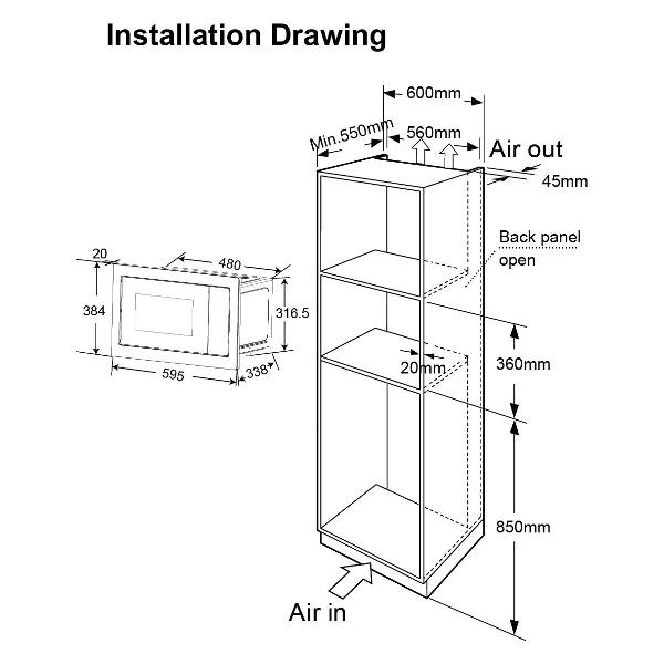 Внутренняя поверхность из нержавеющей стали не ржавеет, не впитывает запахи, устойчива к воздействию высокой температуры и влажности, моющих средств. Диаметр поворотного столика — 27 см. Для дополнительного удобства предусмотрена подсветка. Вес прибора — 14 кг.
