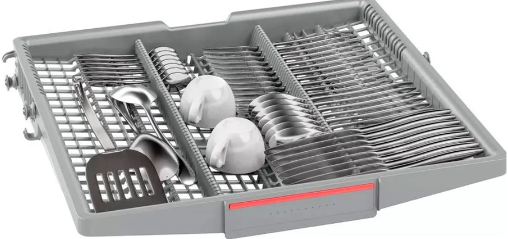 Дополнительную экономию места, при размещении мелких столовых приборов, даёт третий короб, заменяющий стандартную корзину.