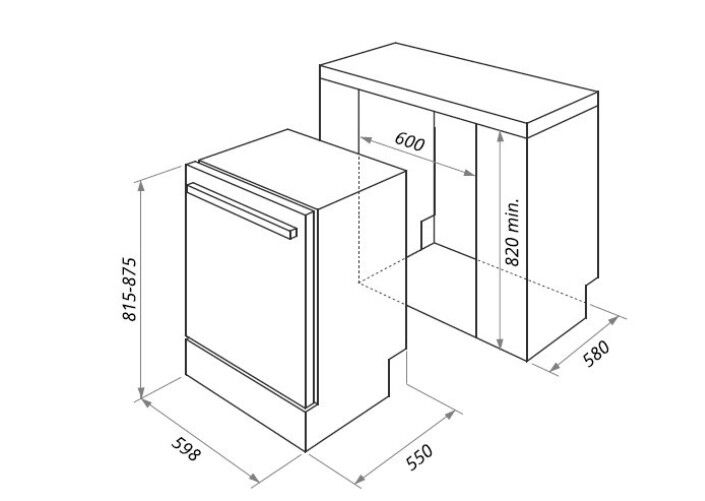 Глубина для встраивания 580 мм