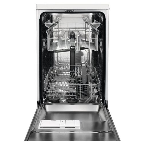 - верхняя корзина: складная полка для чашек, нижняя корзина: несъемная полочка для тарелок; корзина для столовых приборов; Aqua Stop