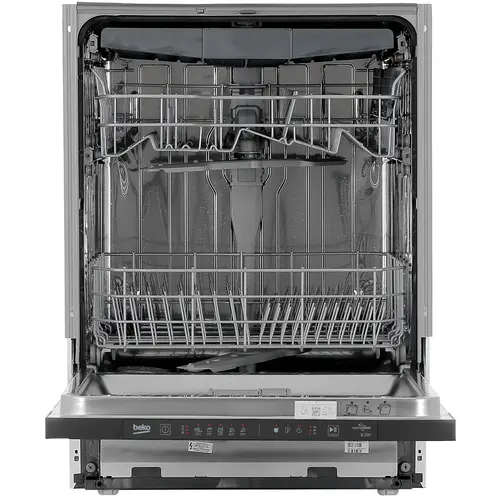 Встраиваемая посудомоечная машина Beko BDIN15560 с 3 корзинами, отдельными полками для чашек и складными держателями для тарелок вмещает 15 комплектов. Верхний разбрызгиватель улучшает качество мойки при полной загрузке камеры. ПММ оповещает об окончании программы звуковым сигналом и лучом на полу. Автооткрывание двери для сушки посуды сокращает потребление энергии.