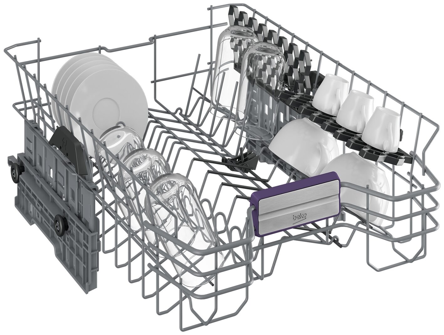 программы: quick&shine, мини 30' 35°, aquaflex, glasscare 40°; функции: быстрая, sidewash; 3-х позиционная регулировка верхней корзины; индикатор протечки, система смягчения воды,