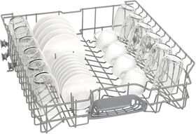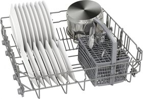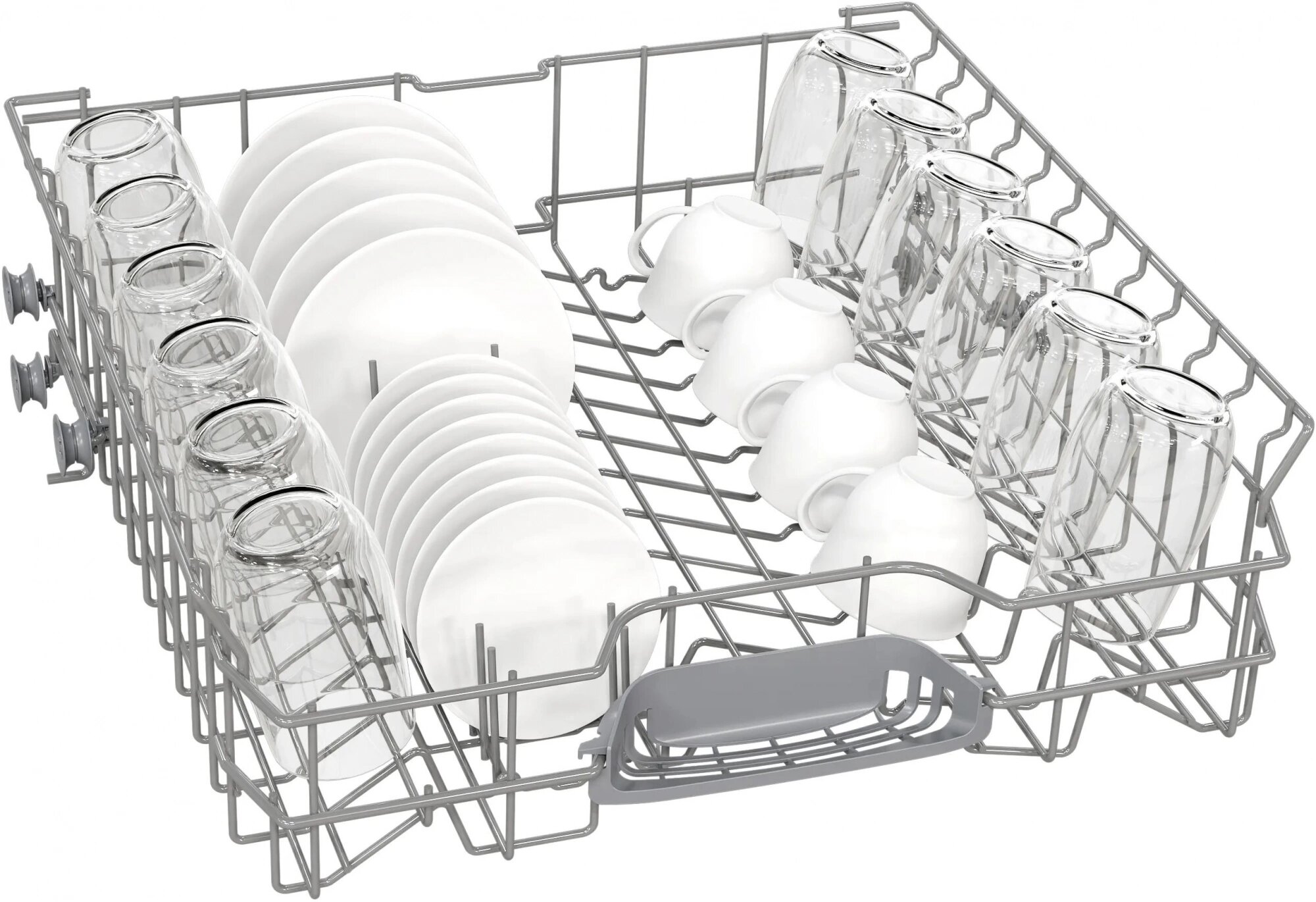 Встраиваемая посудомоечная машина Bosch SMV24AX04E — это высококачественное устройство, произведенное в Евросоюзе, предназначенное для полноразмерного использования. Она обладает черной панелью управления, которая идеально впишется в любой современный интерьер кухни. Дизайн этой модели подчеркивает ее функциональность и технологичность, а также гармонично сочетается с другими элементами кухонного оборудования. Особенностью машины является наличие инверторного двигателя EcoSilence Drive, который обеспечивает тихую и эффективную работу. Этот двигатель значительно улучшает качество мытья посуды и при этом экономит энергию. Встроенный теплообменник обеспечивает высококачественную сушку посуды, а система SpeedPerfectPlus позволяет ускорить процесс мытья без потери качества. Машина оснащена четырьмя стандартными программами мытья, которые позволяют выбрать оптимальный режим в зависимости от степени загрязнения посуды и экономии ресурсов. Три температурных режима позволяют настроить процесс мытья под конкретные типы посуды. Верхний короб машины можно регулировать по высоте, что позволяет разместить большое количество посуды различных размеров. В нижнем коробе предусмотрены две складные направляющие для тарелок и отдельная корзина для столовых приборов. Посудомоечная машина оснащена системой AquaStop, которая предотвращает протечки, а также функцией самоочистки фильтра. Материал внутреннего резервуара — комбинация нержавеющей стали и пластика, что обеспечивает долговечность и надежность машины.