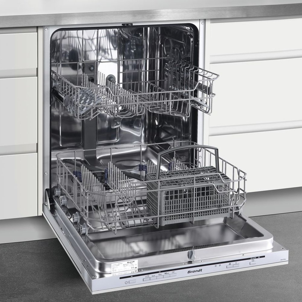 Встраиваемая посудомоечная машина 60 см «Премиум» Brandt VH1772J рассчитана на загрузку 12 комплектов посуды. С помощью электронных кнопок удобно подобрать одну из пяти автоматических программ. Интенсивный режим позволит очистить тарелки, кружки, кастрюли от жира и прилипшей пищи. Ускоренная программа расходует минимальное количество воды и электроэнергии, поэтому оптимальна для ежедневного использования.