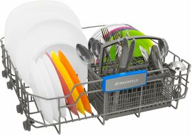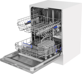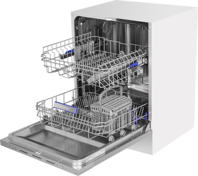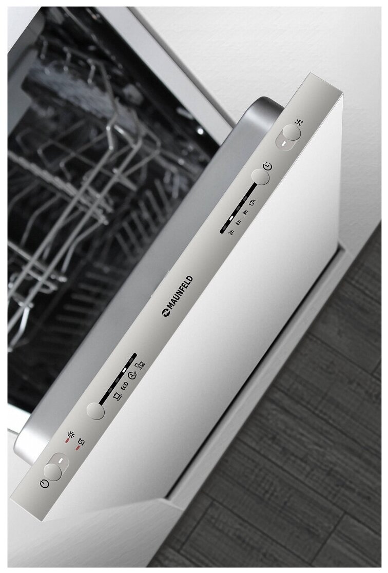 внутренняя поверхность из нержавеющей стали, использование средств 3 в 1, регулируемая по высоте корзина для посуды, сенсор чистоты воды, таймер отсрочки, быстрая мойка, индикатор наличия ополаскивателя, индикатор наличия соли, экономичная программа