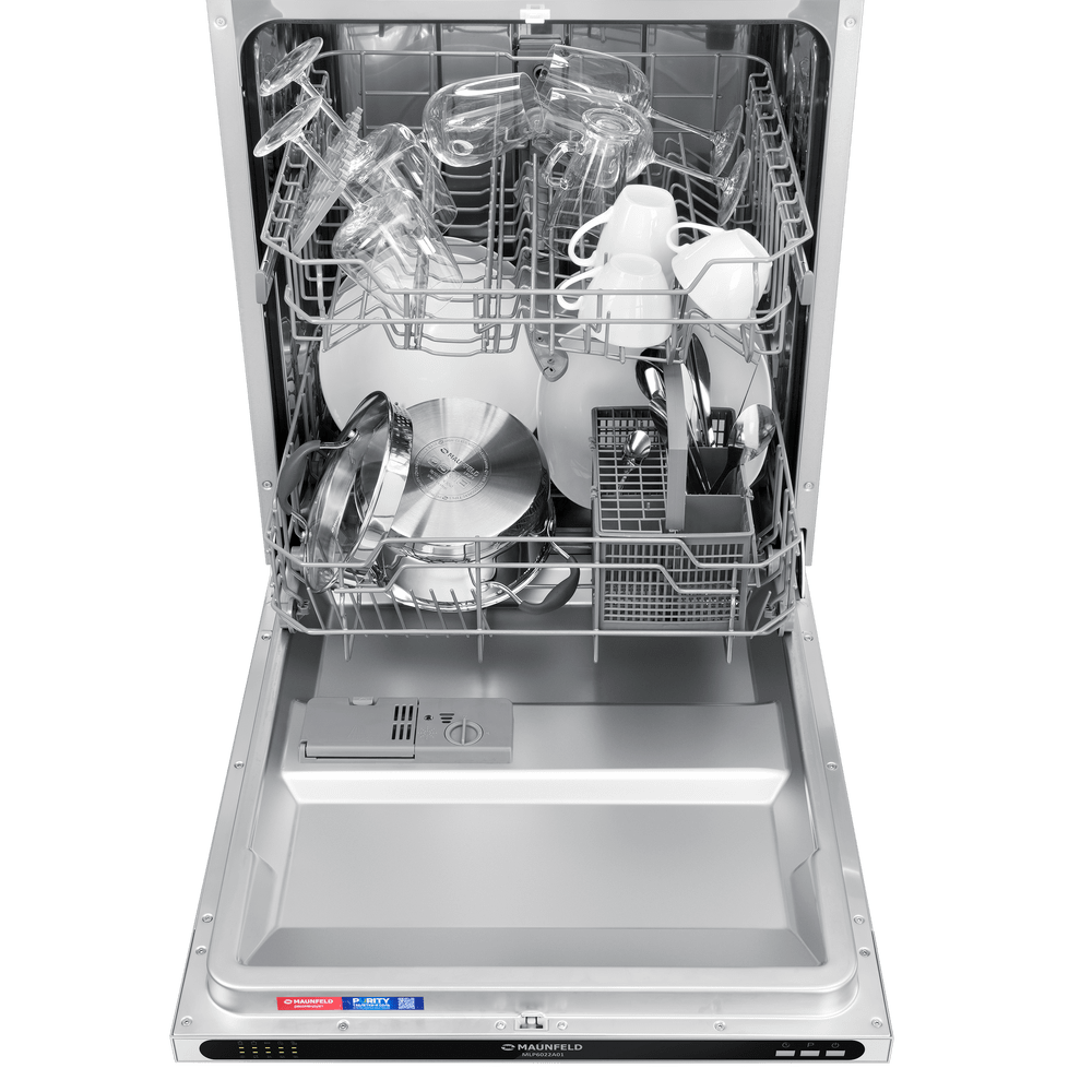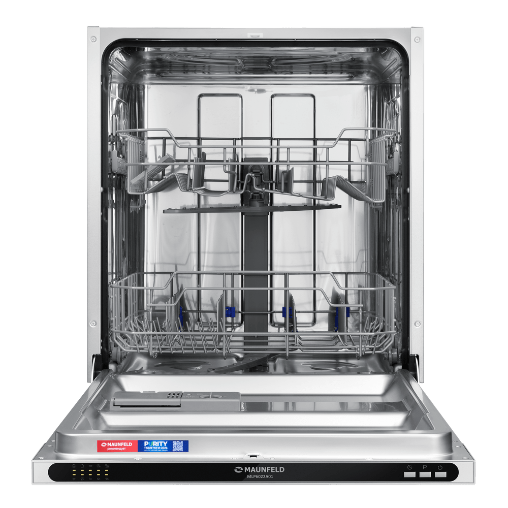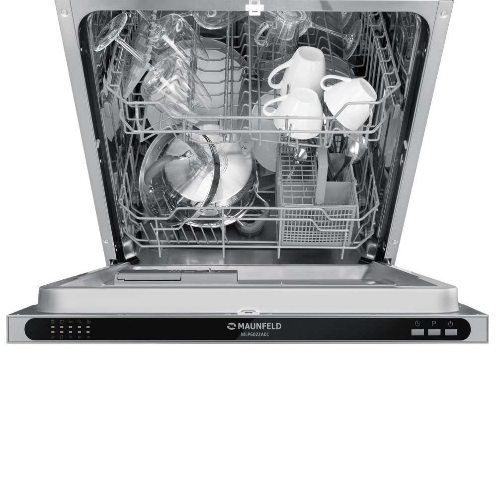 MAUNFELD MLP6022A01— полноразмерная встраиваемая посудомоечная машина, которая избавит вас от необходимости мыть посуду вручную . Вместимость — до 12 комплектов посуды. За раз можно помыть сразу много посуды — это оценят большие семьи и те, кто любит готовить или часто принимает гостей. В машине максимально эффективно организовано внутреннее пространство. Есть удобная корзина для столовых приборов и мелкой утвари. Верхняя корзина — с изменяемой высотой установки, чтобы можно было мыть посуду разного размера и объёмов. В верхней корзине есть складные держатели для бокалов — дополнительное важное удобство. Предусмотрены несколько программ мытья для посуды разной степени загрязнения. Посудомоечная машина MAUNFELD MLP6022A01— помоет посуду без вашего участия, освобождая время для более приятных занятий.