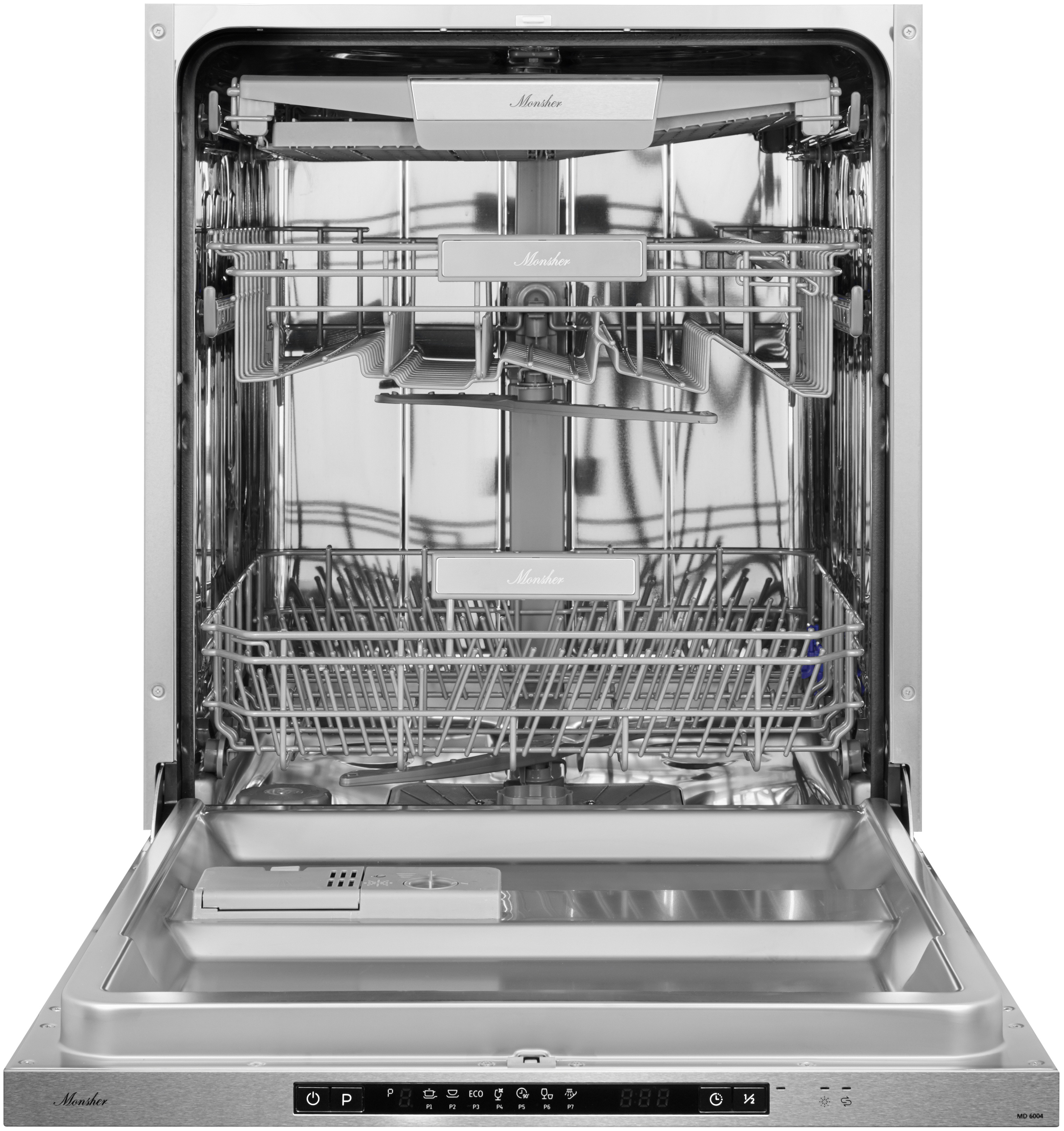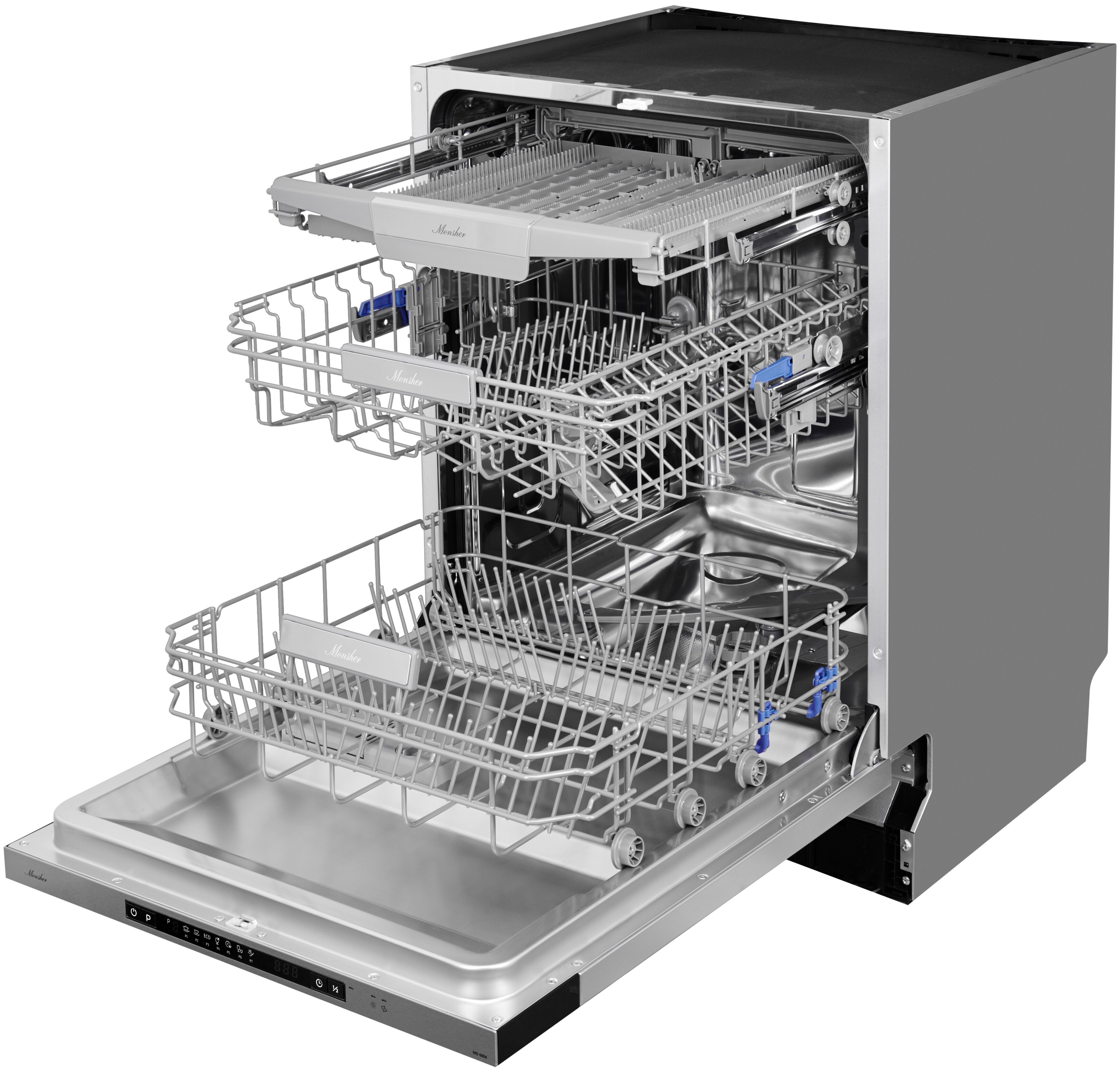 дисплей, подсветка камеры, регулируемая по высоте корзина для посуды, таймер отсрочки